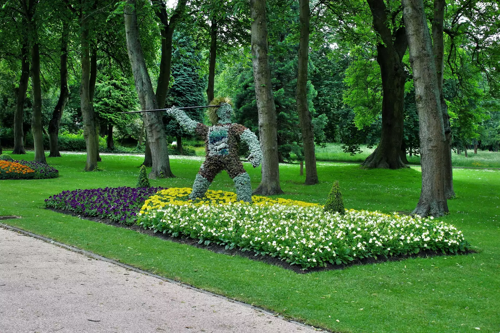 Zdj臋cia, Park, Drzewa, Trawa, Kwiaty