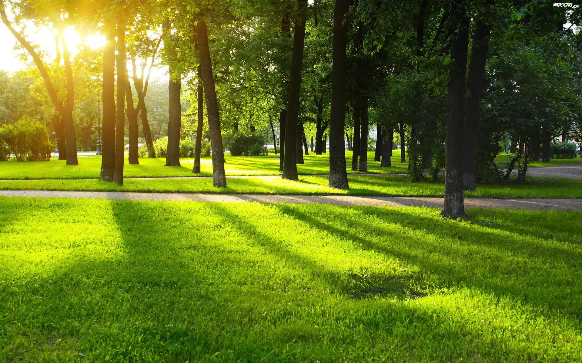 Zdjęcia, Park, Drzewa, Zielona, Trawa, Lato