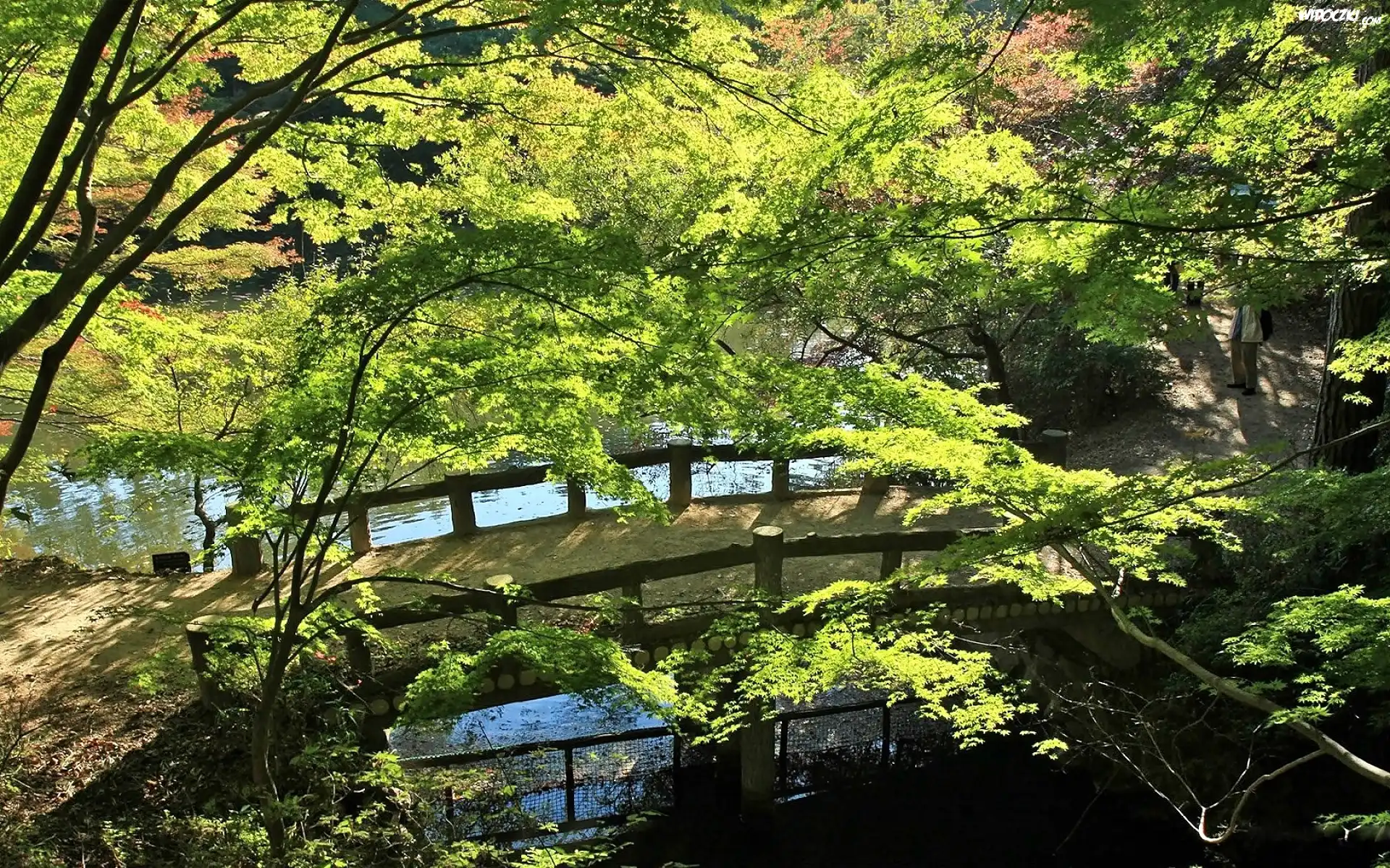 Zdjęcia, Park, Strumyk, Mostek, Światła, Cienie