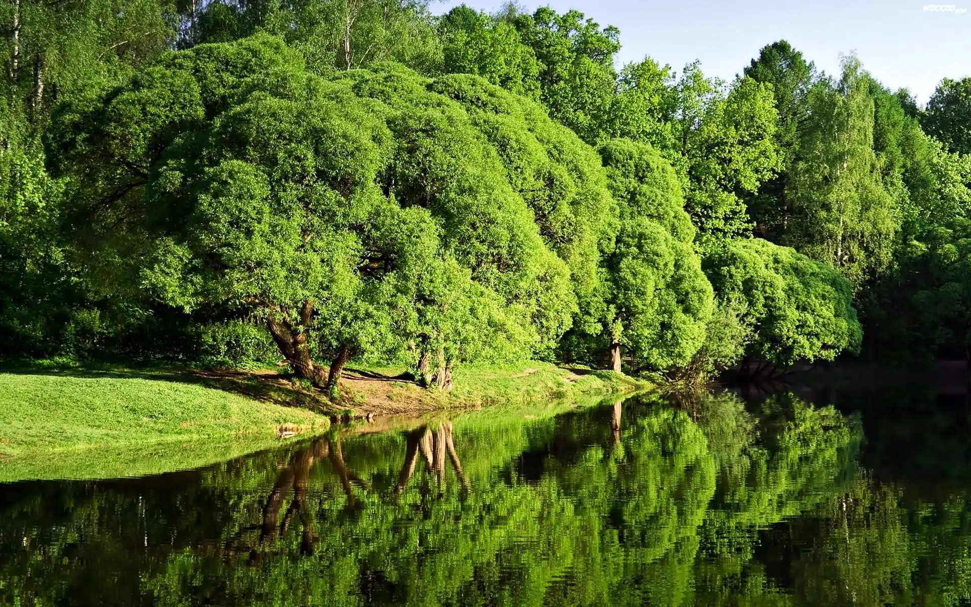 Zdjęcia, Park, Rzeka, Przebijające, Światło, Odbicie