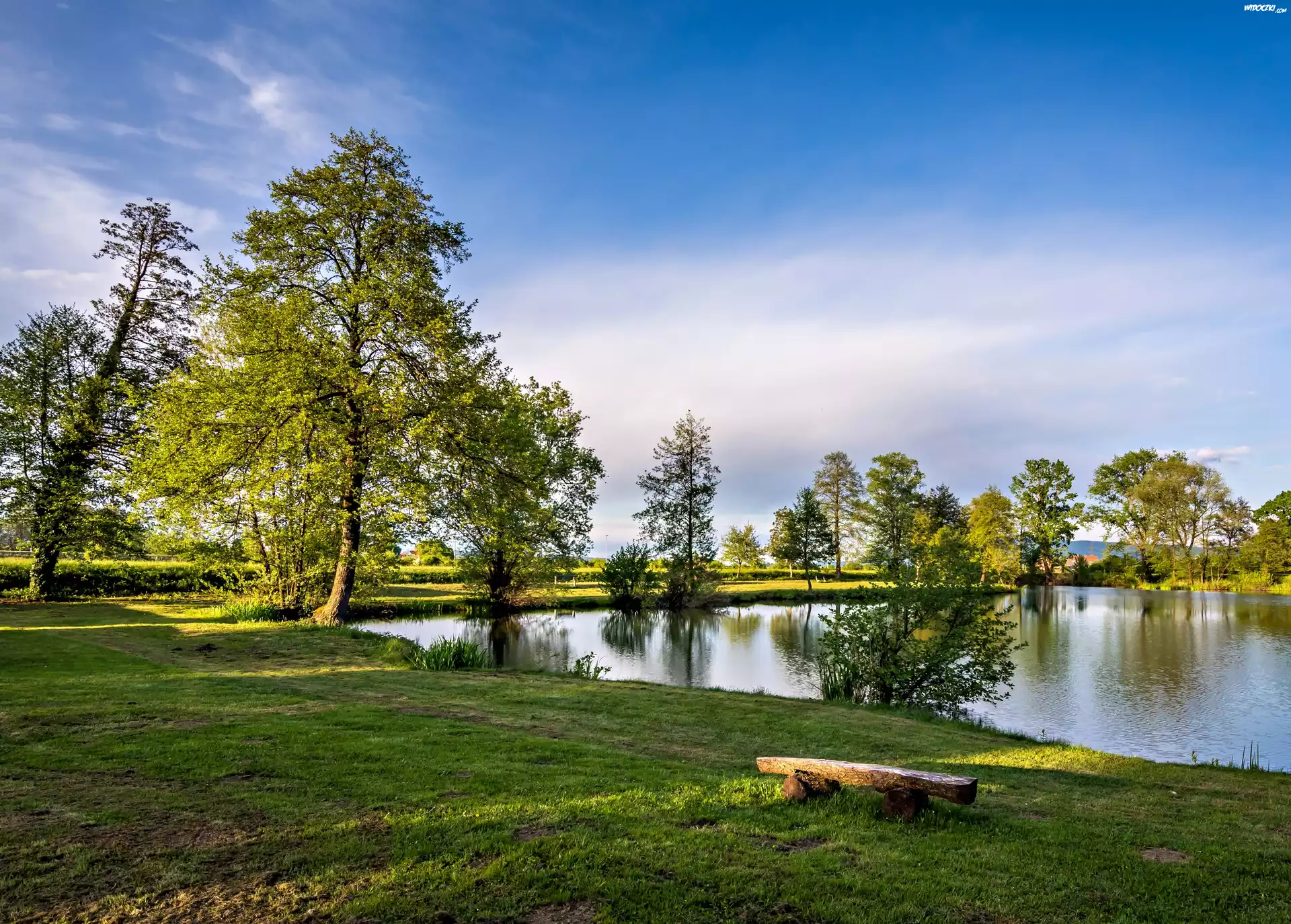 Zdjęcia, Park, Staw, Przebijające, Światło, Zagrzeb
