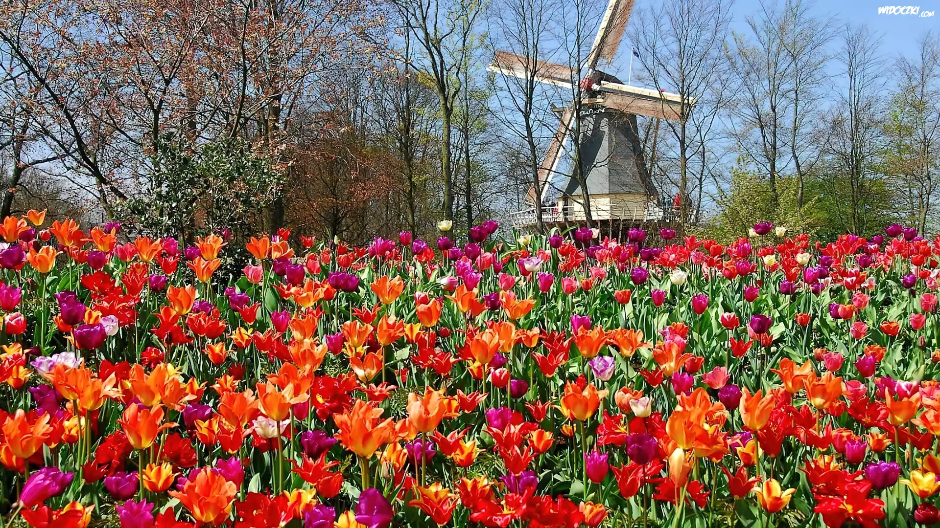Zdjęcia, Park, Tulipany, Wiatrak, Lisse