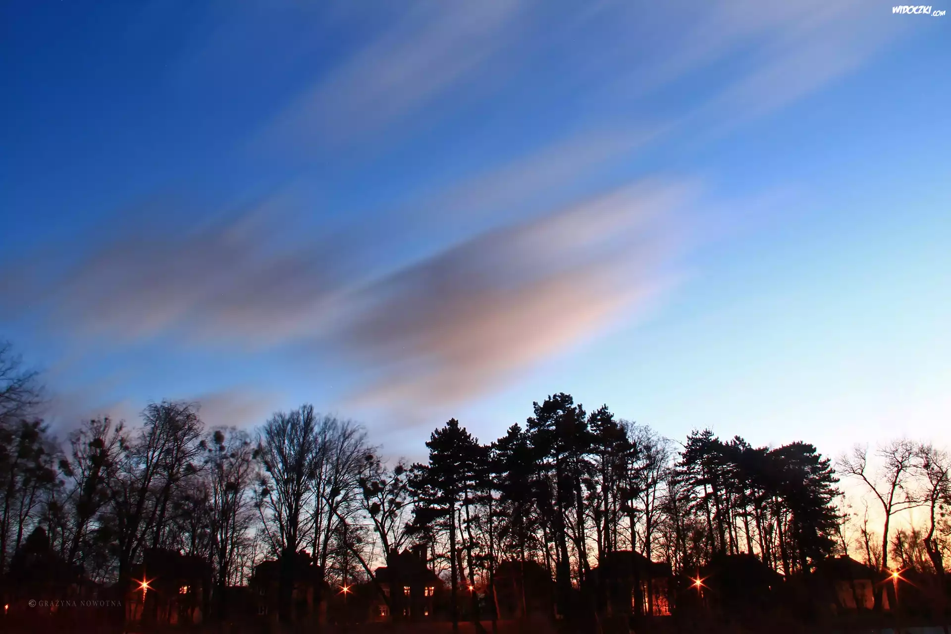 Zdjęcia, Park, Drzewa, Wieczór, Niebo