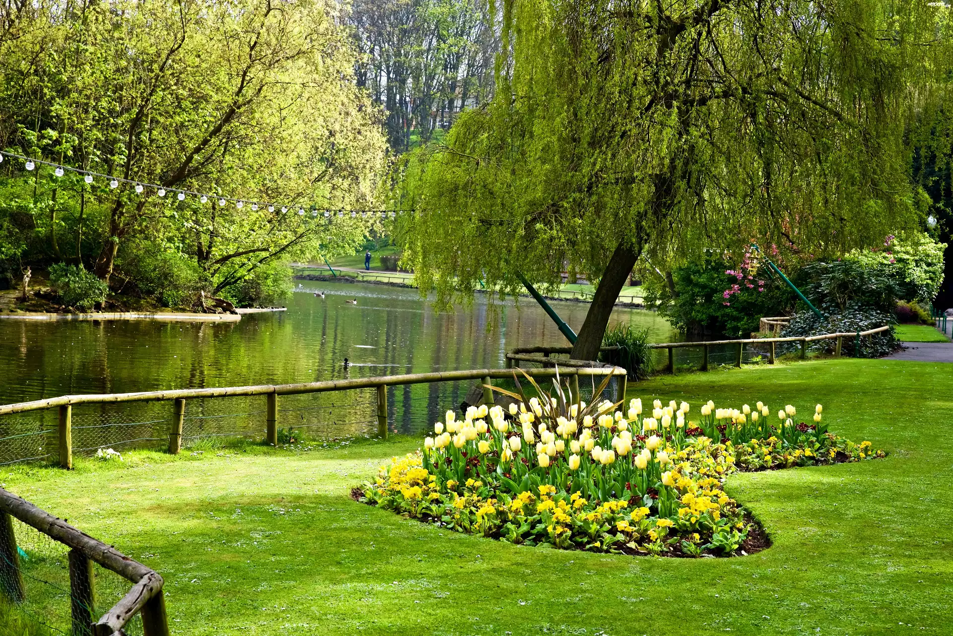 Wiosna, Park, Staw