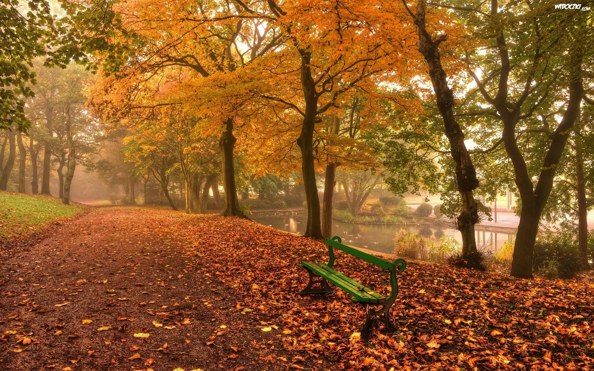 Park, Aleja, Liście, Zbiornik, Wodny, Jesień