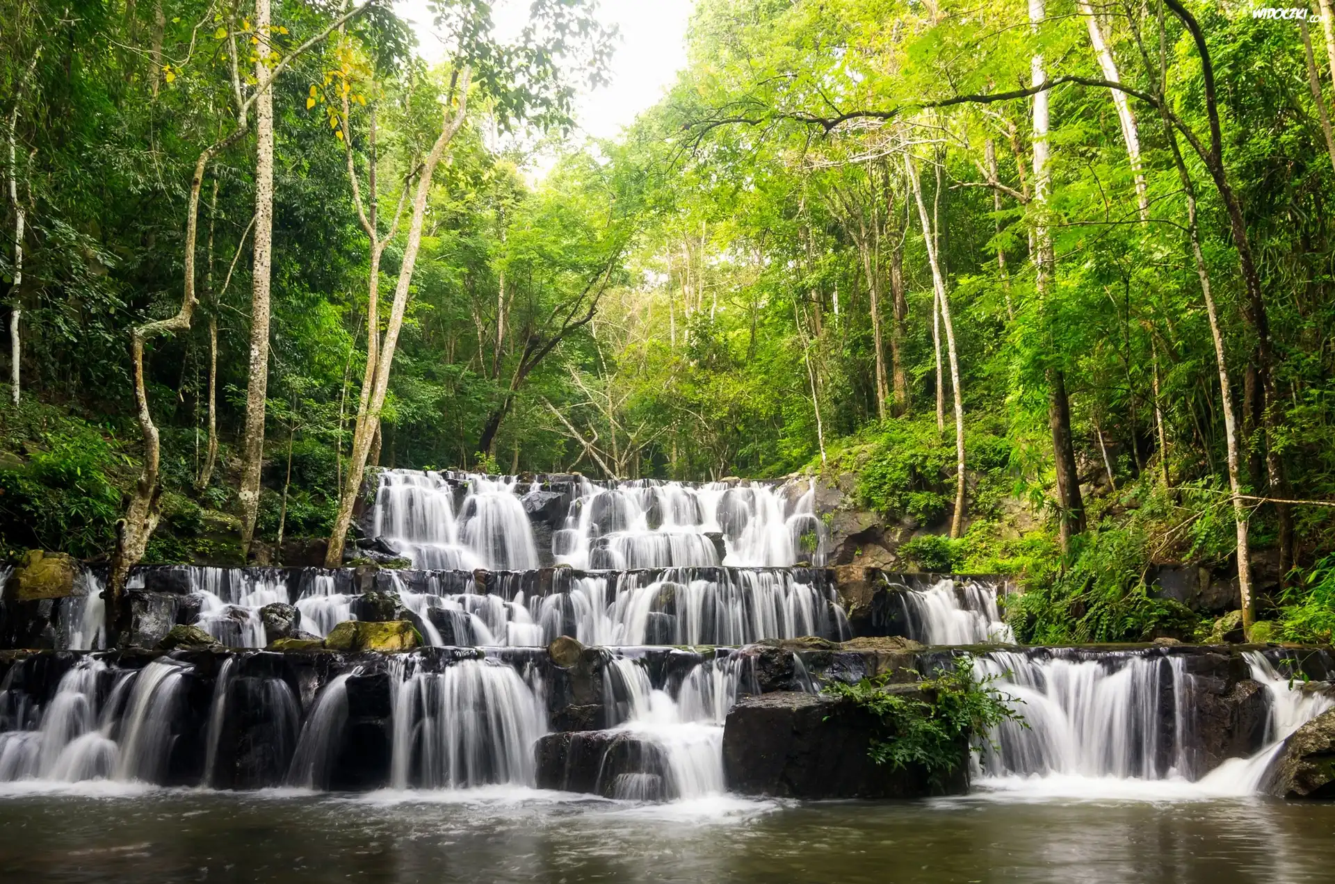 Wodospad Sam Lan Waterfall, Park Narodowy Namtok Sam Lan, Prowincja Saraburi, Tajlandia, Drzewa, Las |