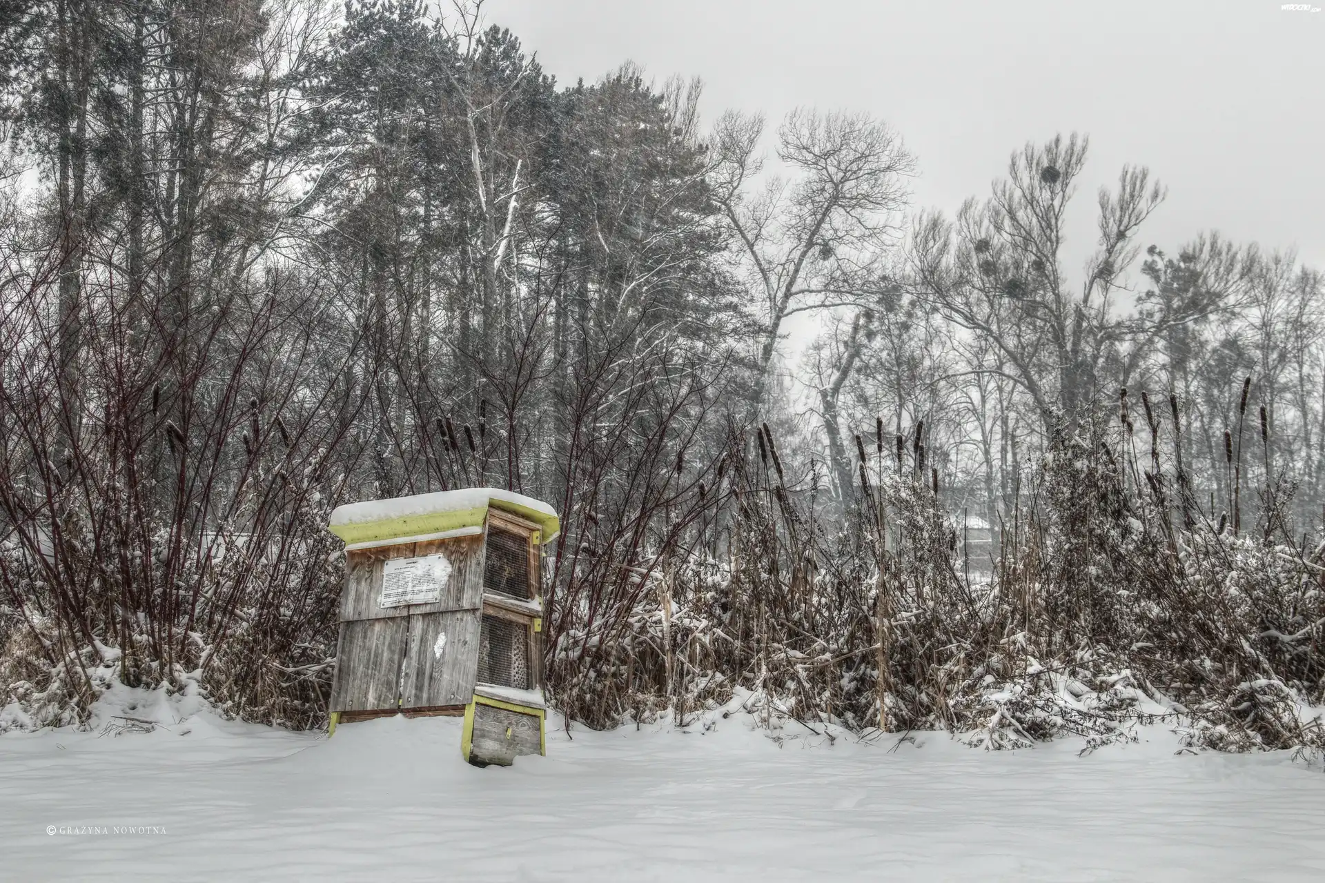 Zima, Park Sołacki, Poznań, Domek, Dla Owadów Zapylających