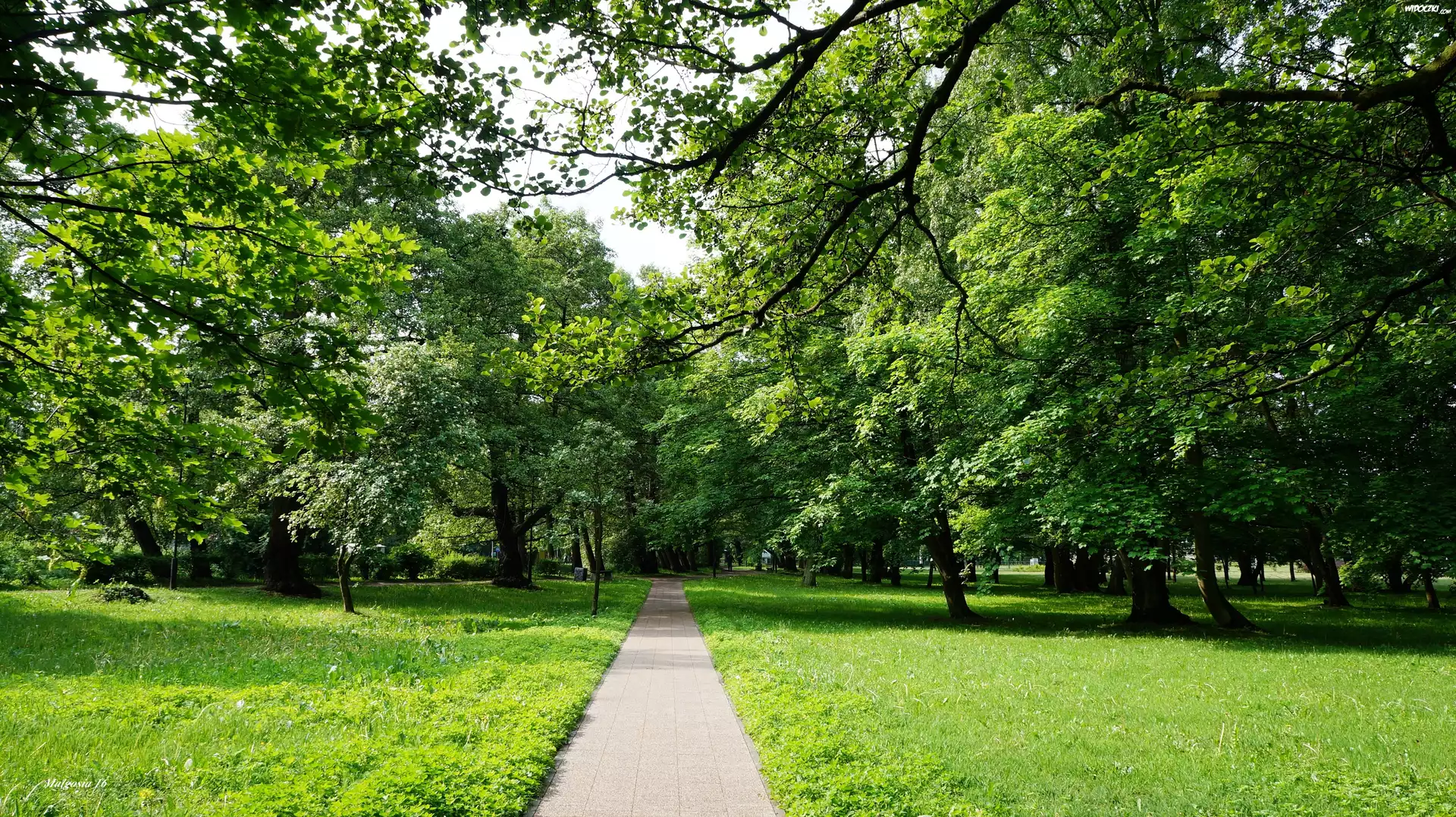 Zdjęcia, Polska, Gdańsk, Park Jelitkowski, Ścieżka, Droga, Drzewa, Zieleń, Trawnik