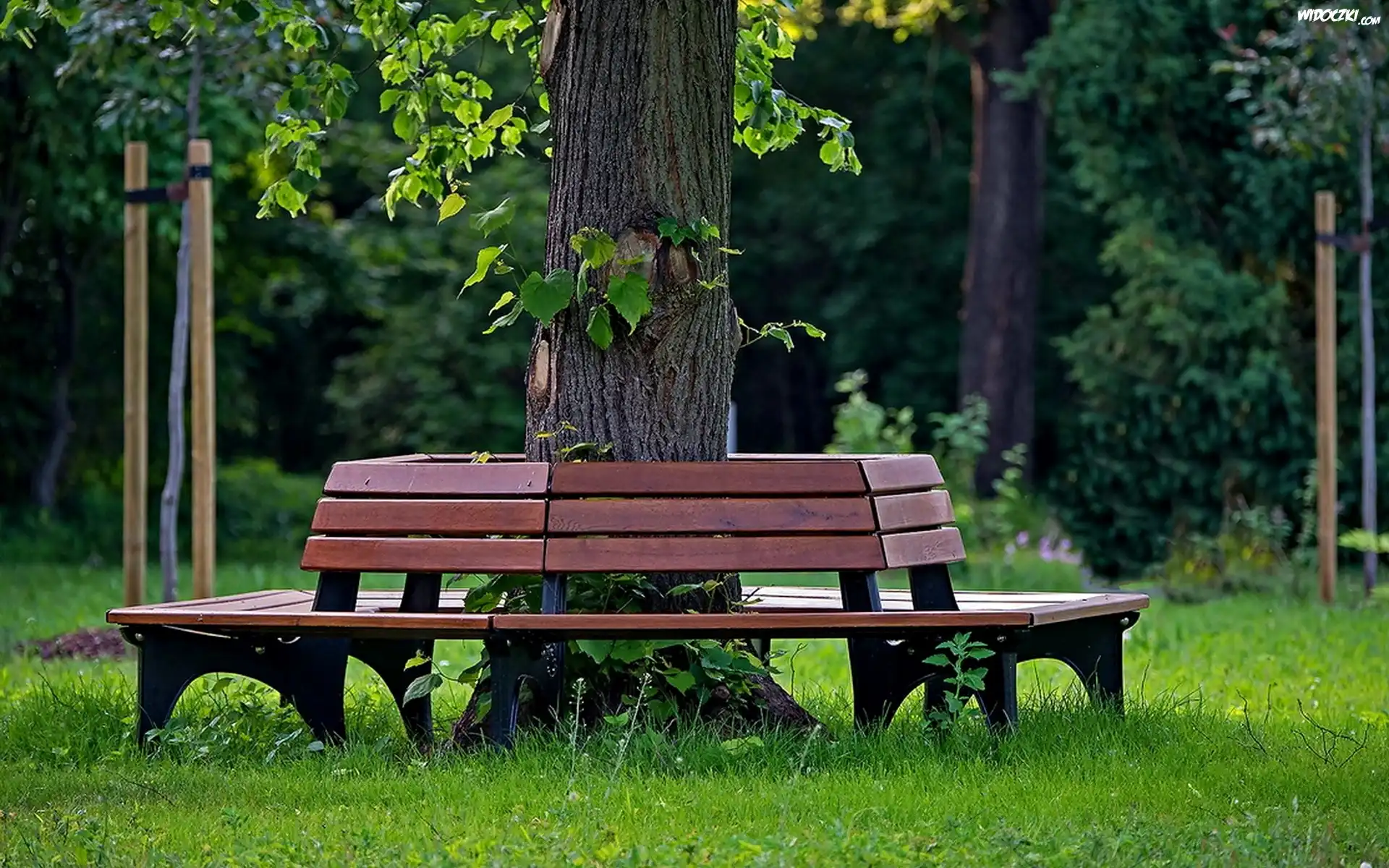 Zdjęcia, Park, Drzewa, Zieleń, Ławka