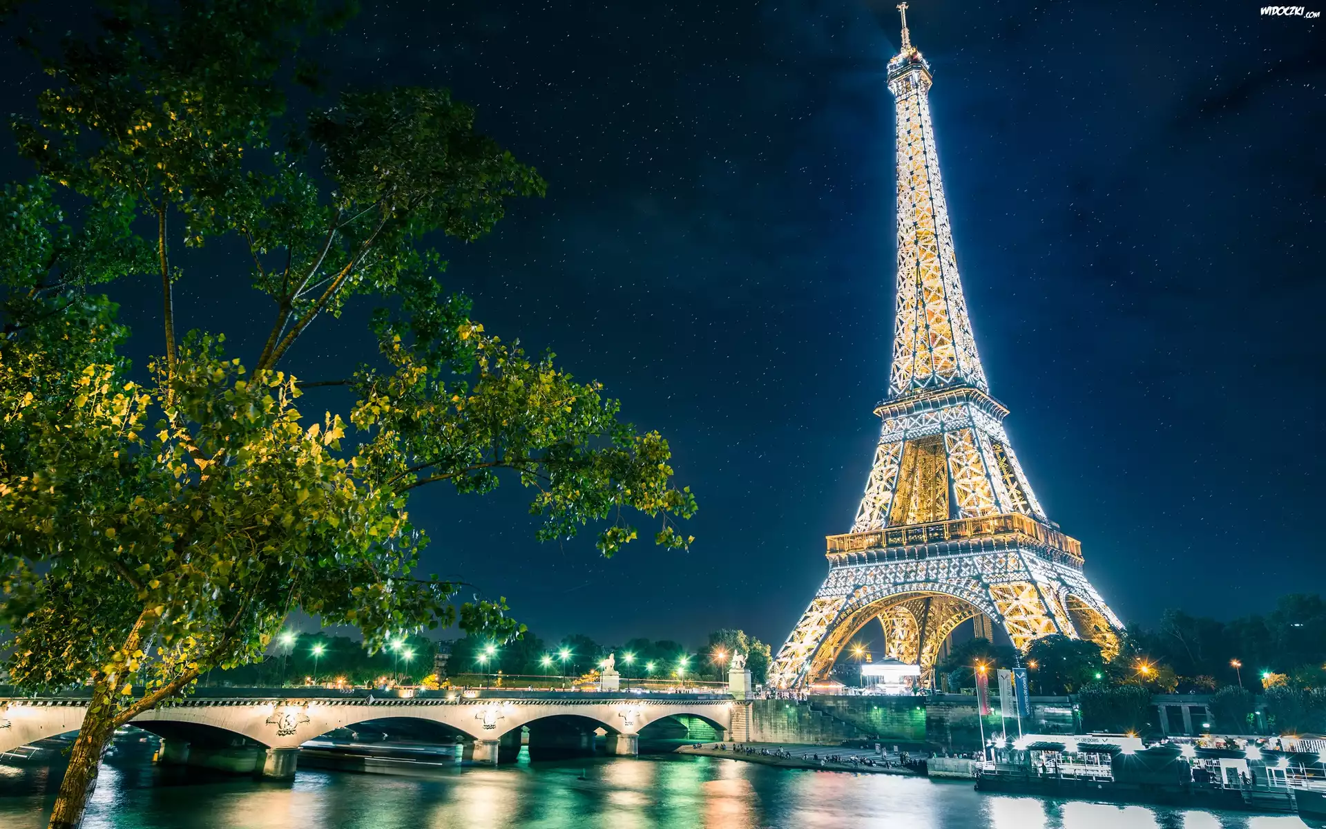 Paryż, Wieża Eiffla, Most, Rzeka, Sekwana, Francja