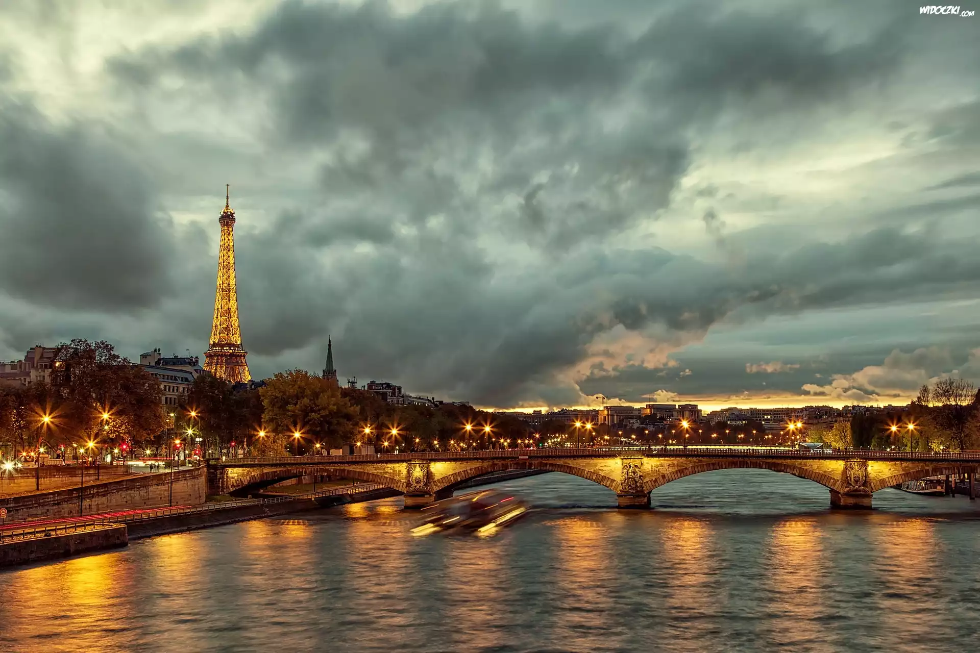 Zdjęcia, Paryż, Francja, Wieża Eiffla, Sekwana, Most