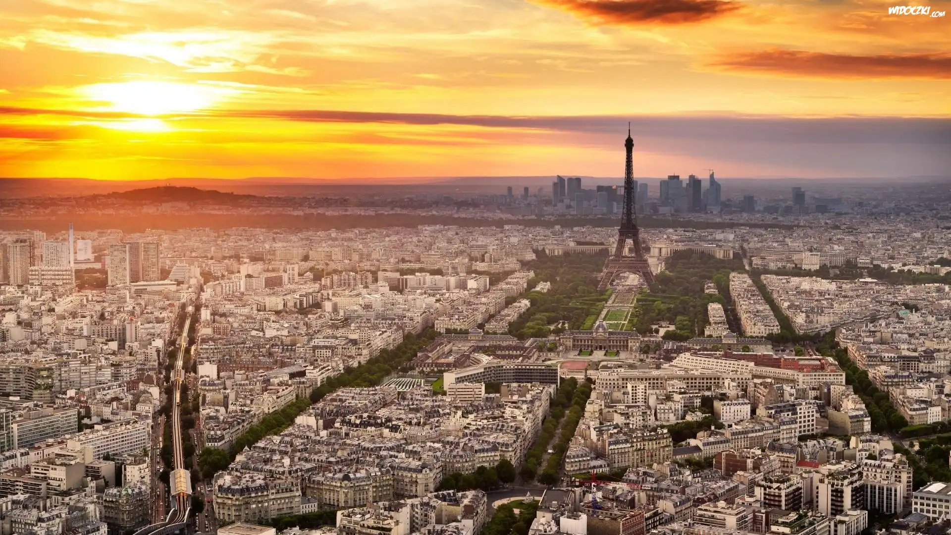 Paryż, Miasto, Wieża Eiffla,Zachód słońca