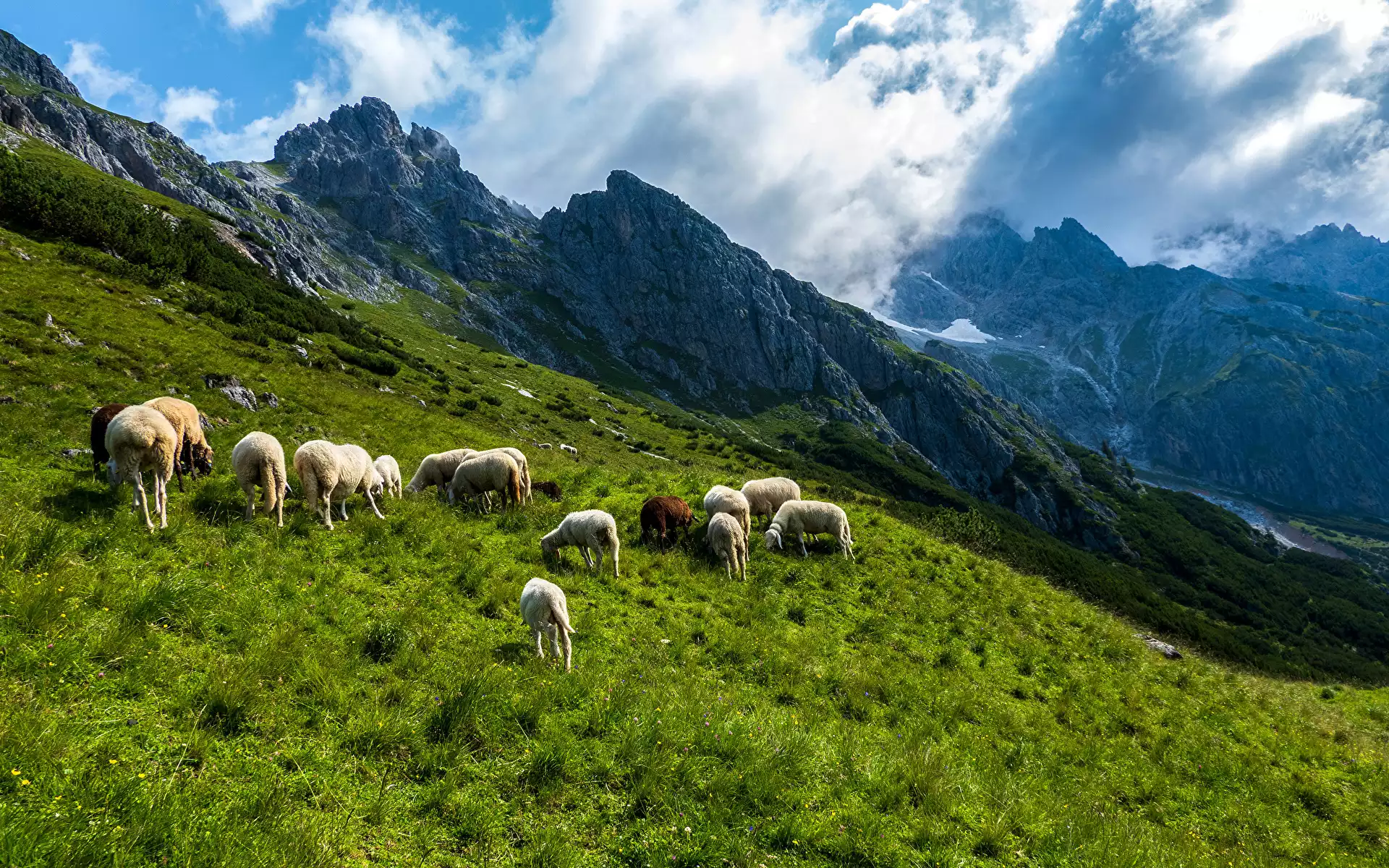 Zdjęcia, Góry, Chmury, Owce, Pastwisko
