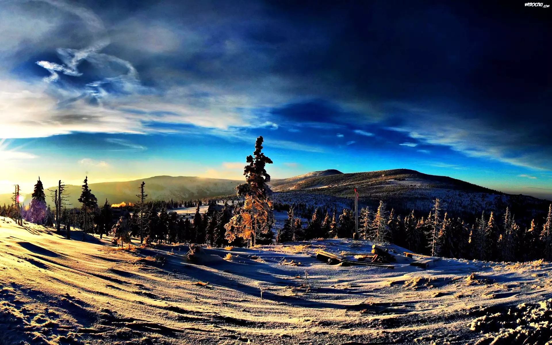 Zdjęcia, Zimowy, Pejzaż, Niebo