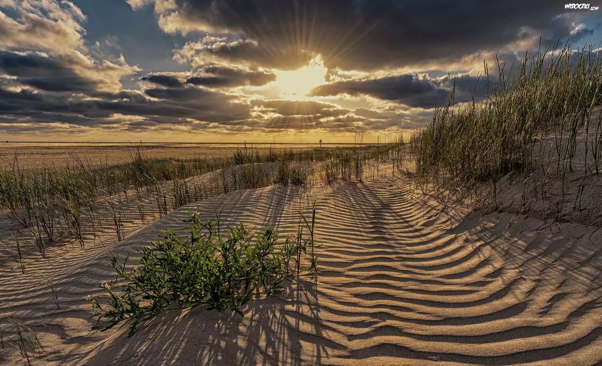 Zdjęcia, Niemcy, Sankt Peter-Ording, Piaszczyste, Wybrzeże, Morze Północne, Promienie słońca, Plaża