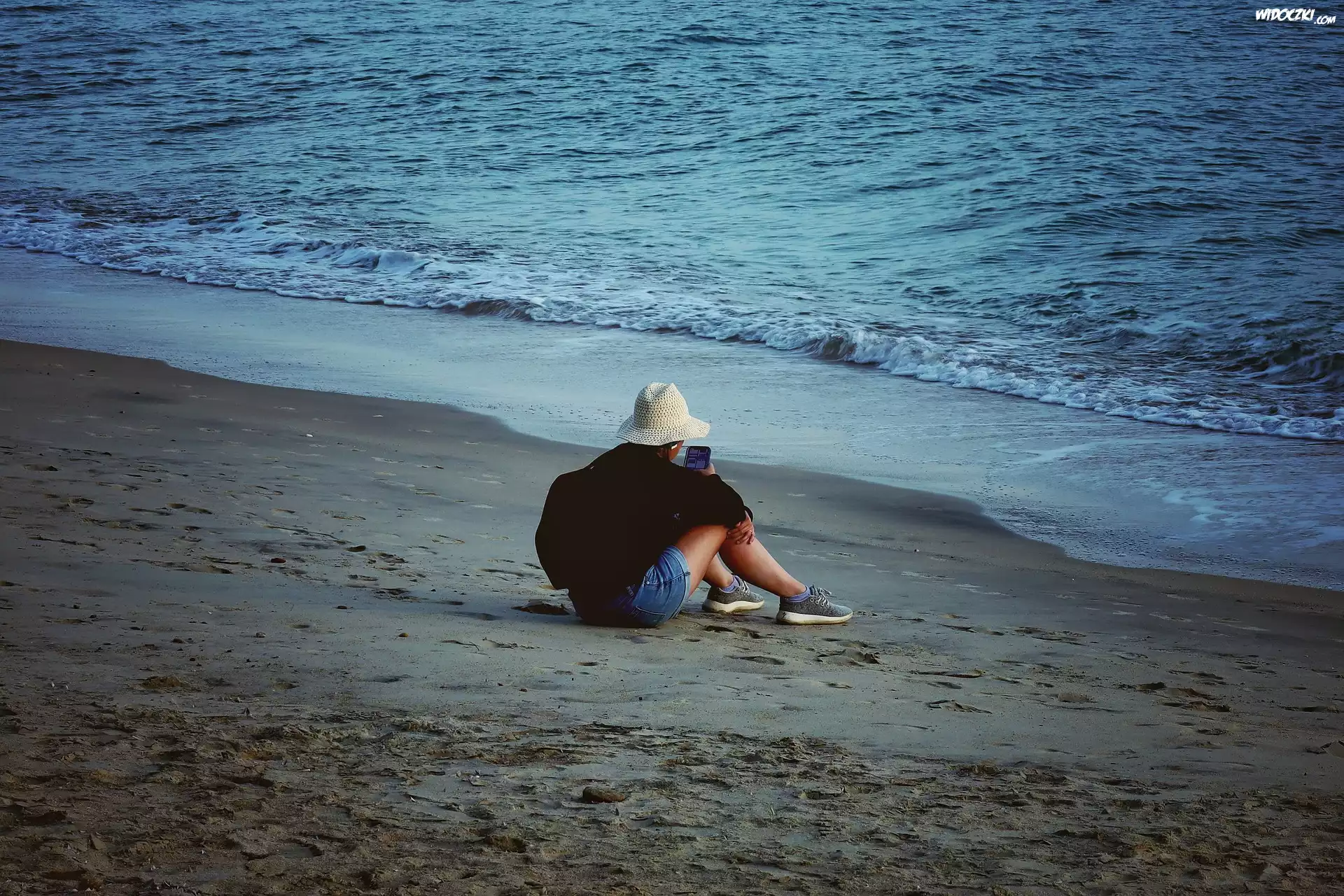 Zdjęcia, Morze, Plaża, Fale, Piasek, Wypoczynek, Osoba, Dziewczyna