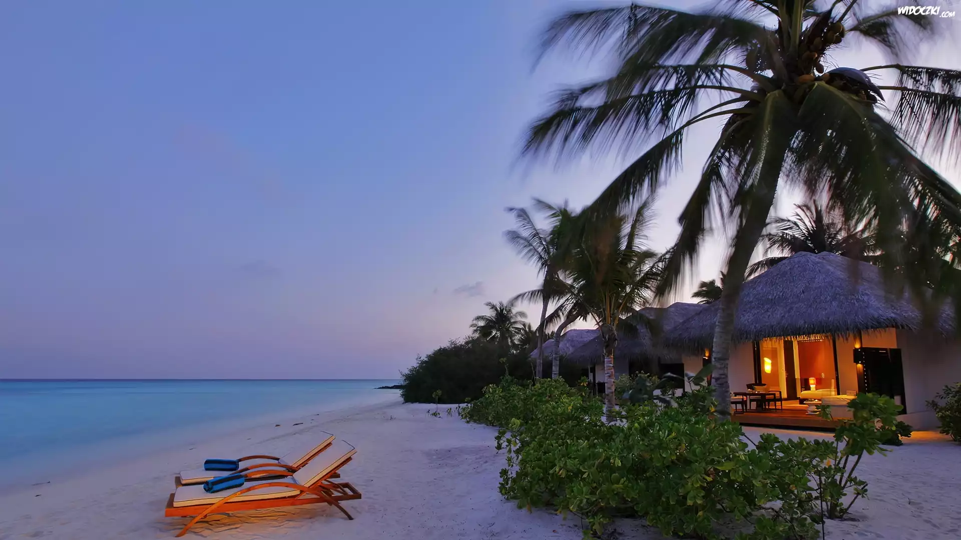 Zdjęcia, Piasek, Palmy, Leżaki, Domki, Wakacje