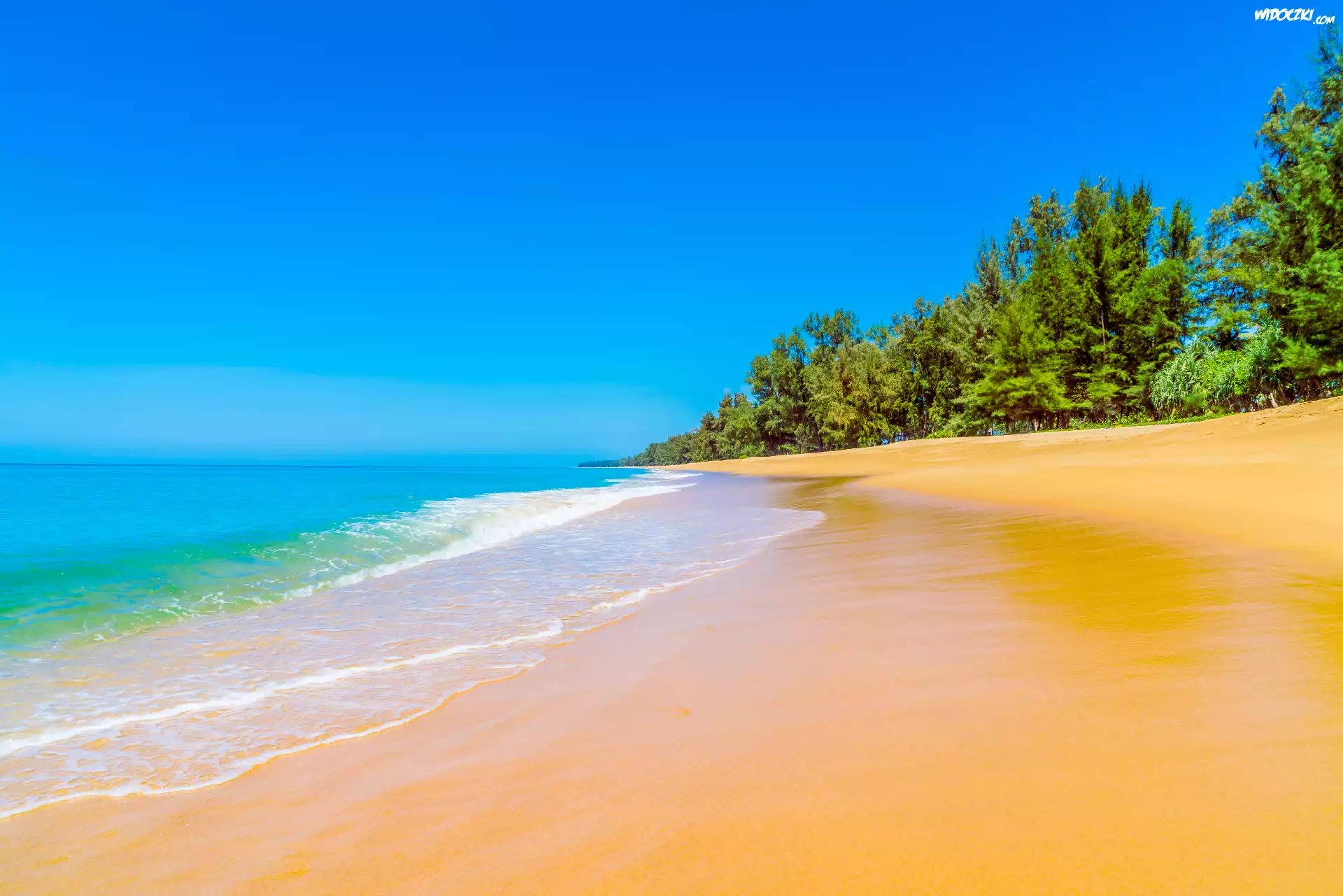 Zdjęcia, Lato, Ocean, Plaża, Piasek, Niebieskie, Niebo, Drzewa