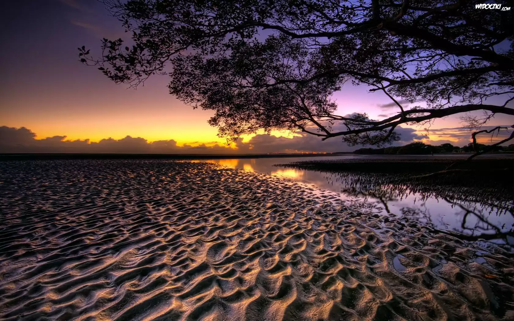 Zdjęcia, Piasek, Zachód, Słońca, Drzewo