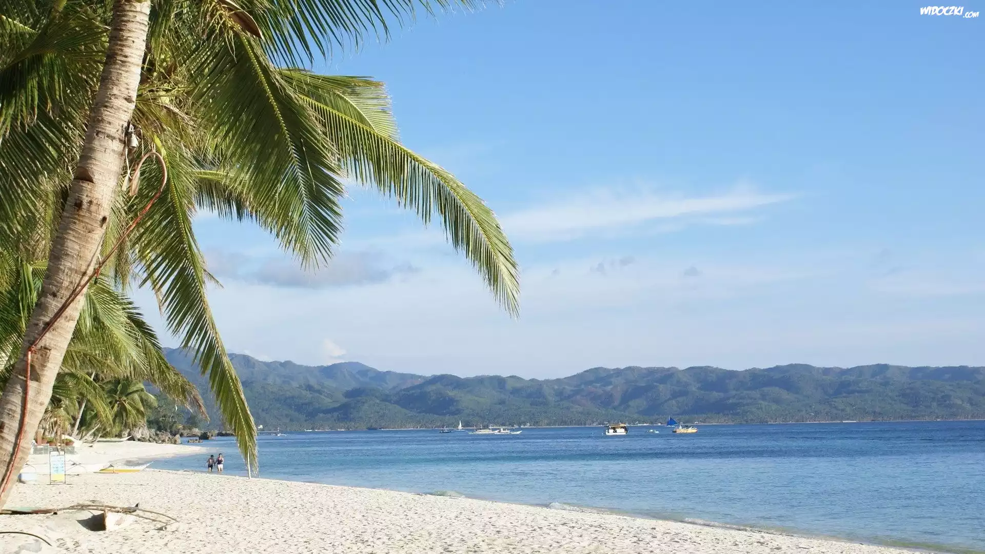 Zdjęcia, Piasek, Palma, Woda, Łodzie, Wzgórza, Niebo