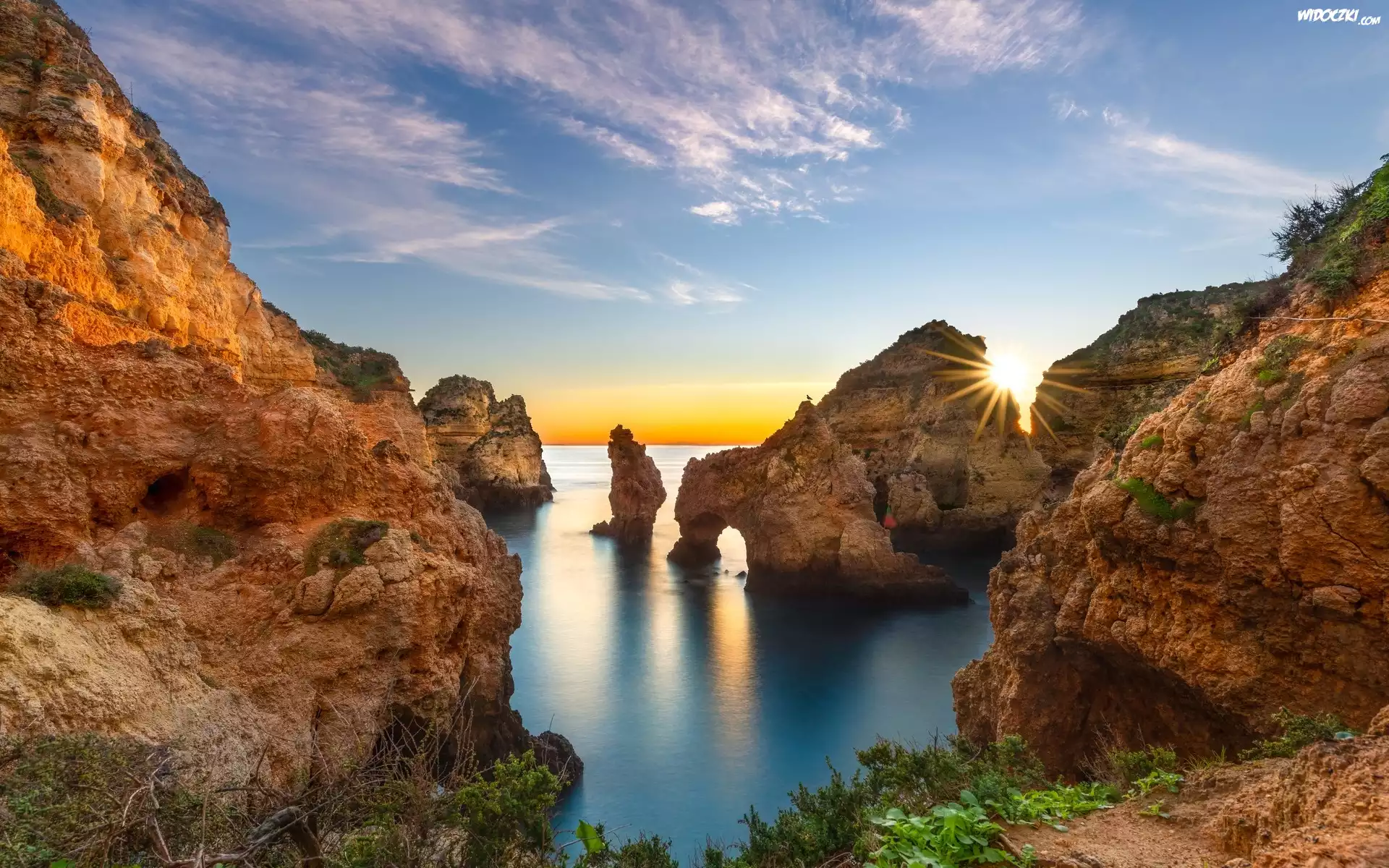 Zdjęcia, Portugalia, Region Algarve, Cypel, Ponta da Piedade, Morze, Skały, Promienie słońca