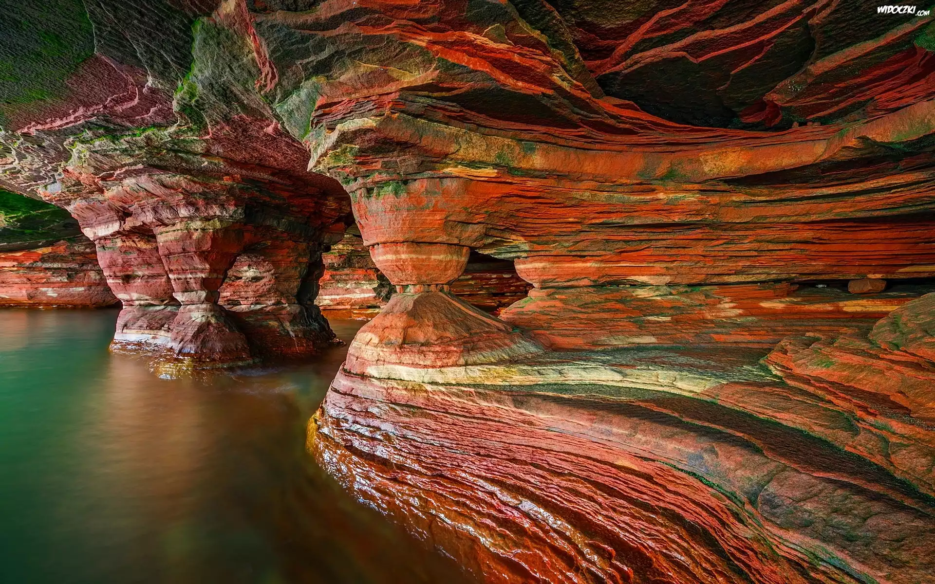 Piękne, Kolorowe, Skały, Morze, Jaskinia