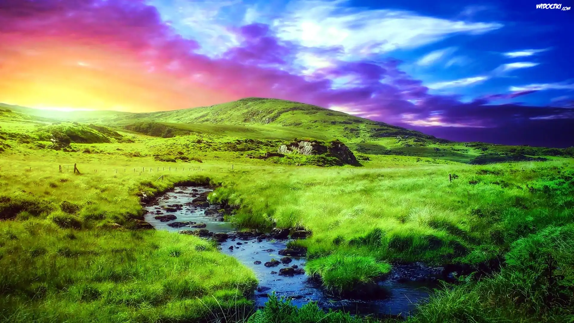 Pola, Rzeka, Drzewa, Chmury Góry, Drzewa, Trawa, Jezioro Rzeka, Las, Kamienie, Mech Krajobraz Morze, Skały, Dwa, Kajaki Góry, Łąka Krajobraz Nogi, Plaża, Palma Anglia, Krajobraz Irlandia, Europa, Kamienie, łąka Las, Rzeka, Zachód, Słońca, Czółno Wiosna, Most, Rzeka, Kwiaty Niedźwiedź, Rzeka Chatka, Wzgórze, Łąka