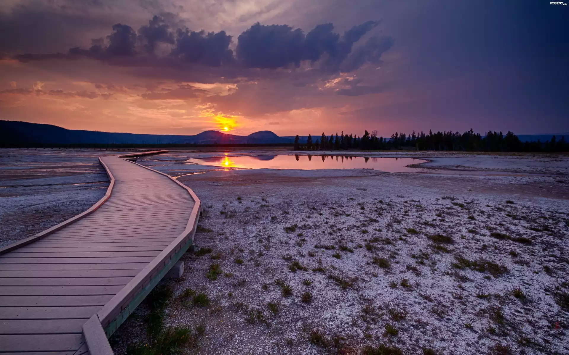 Zdjęcia, Piękny, Zachód, Słońca, Wysuszone, Jezioro
