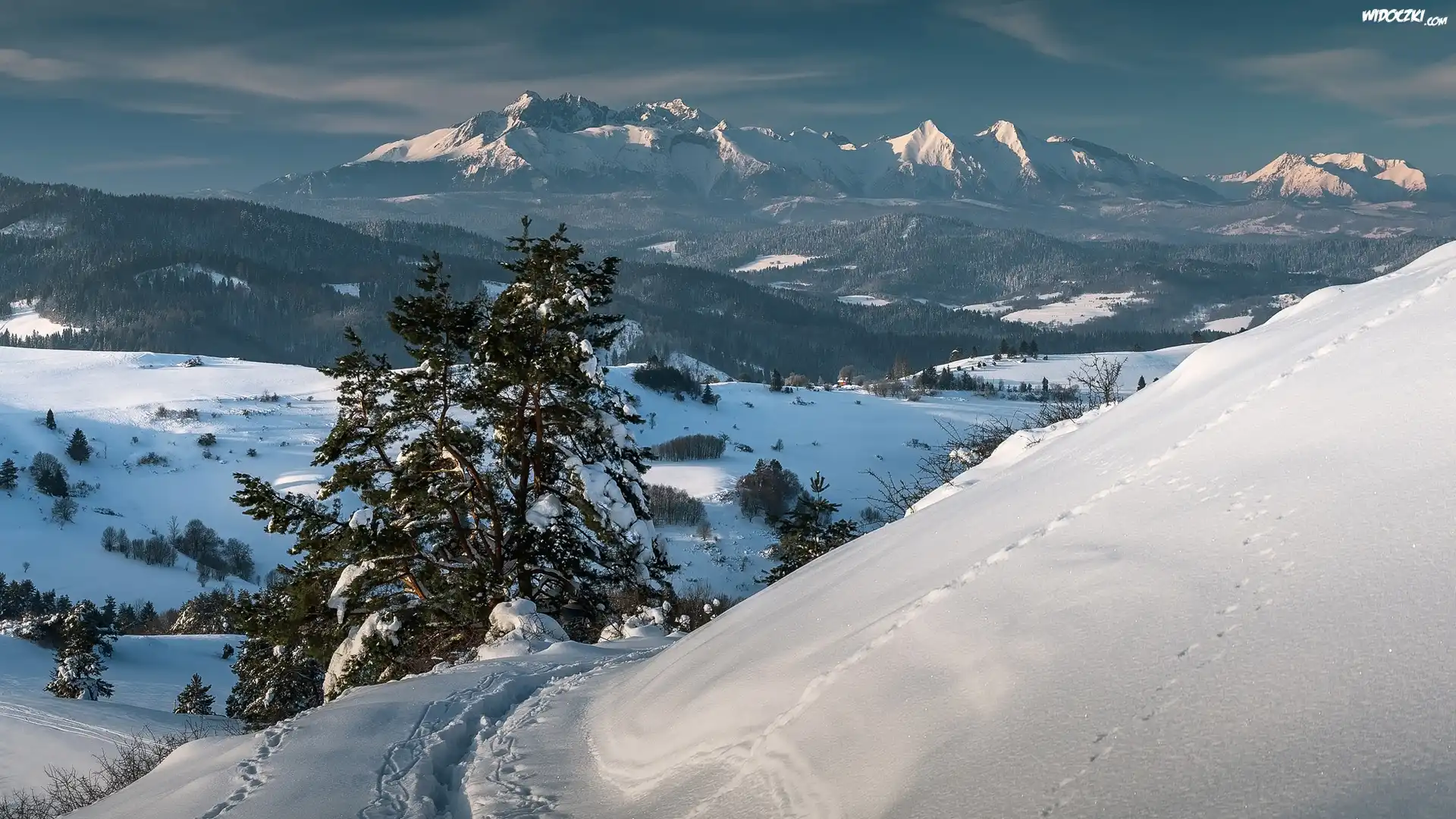 Zima, Śnieg, Drzewa, Pieniny, Góry, Tatry, Polska