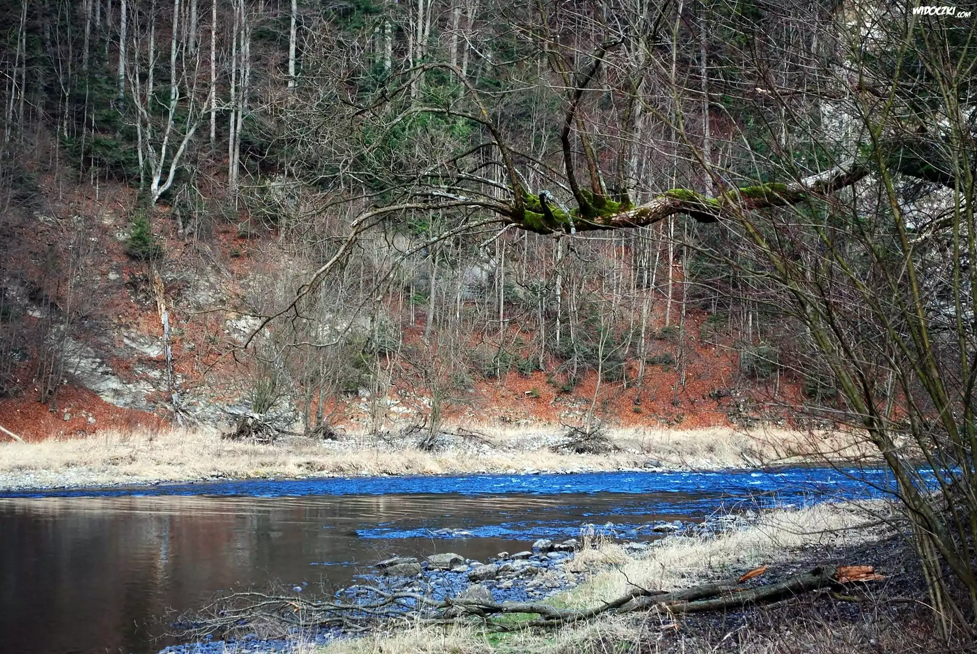 Góry, Pieniny, Skarpa, Las, Rzeka, Dunajec, Wiosna