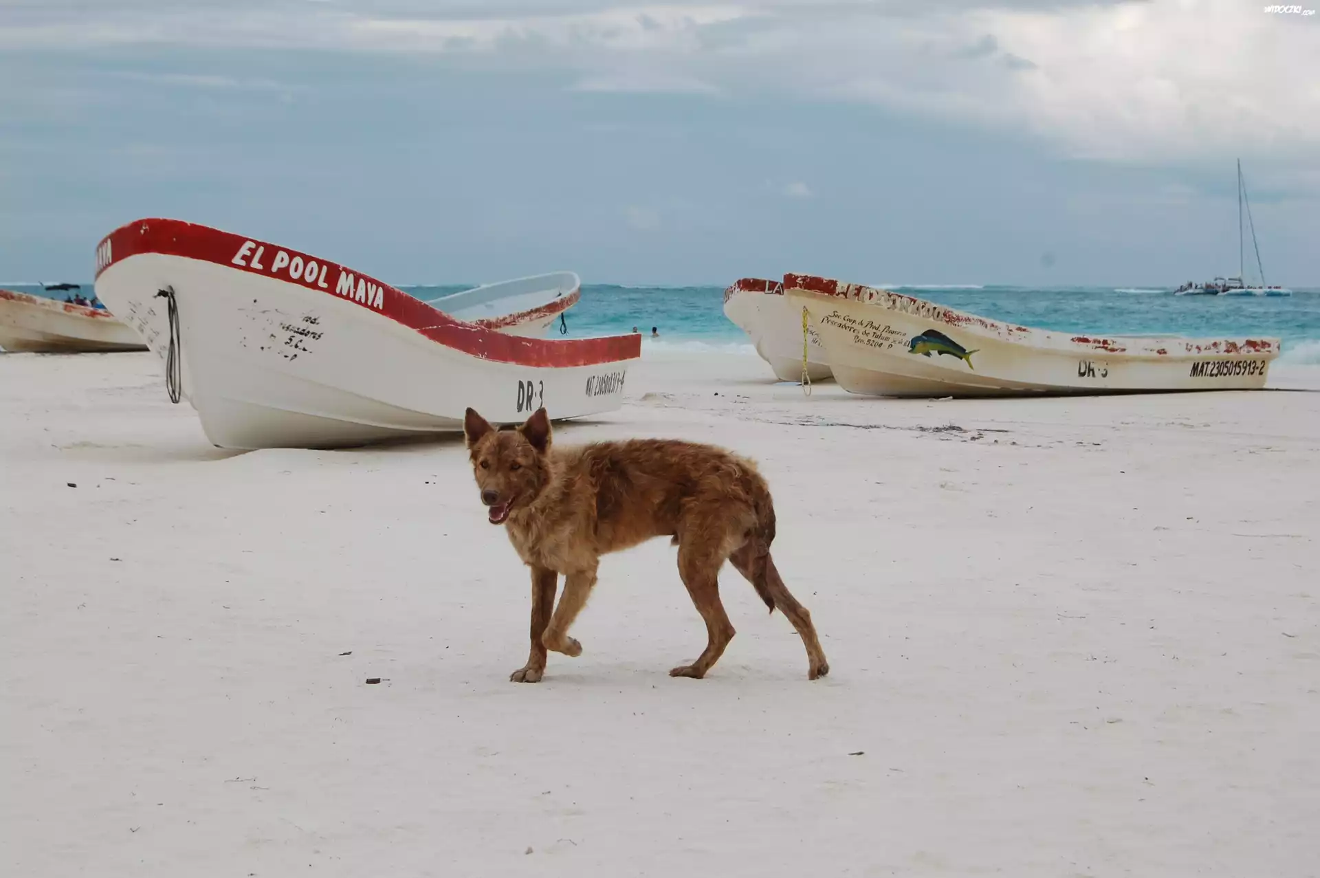 Zdjęcia, Plaża, Pies, Łódki