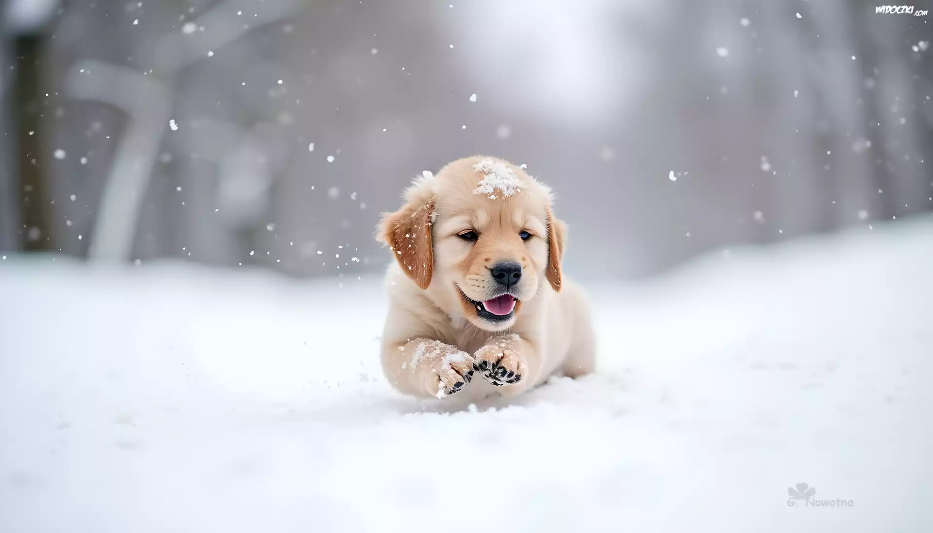 Zdjęcia, Szczeniak, Pies, Śnieg, Zima, Grafika