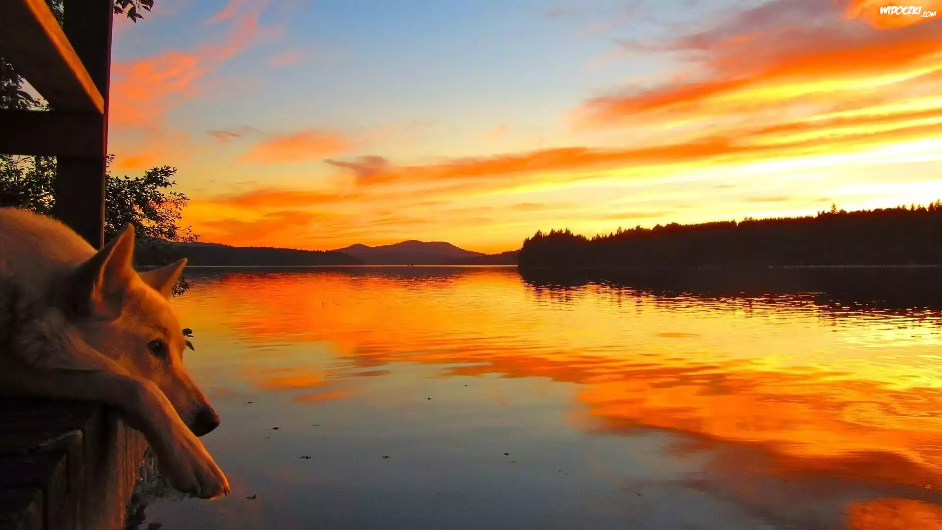 Pies, Na, Pomoście, JeZioro, Zachód, Słońca