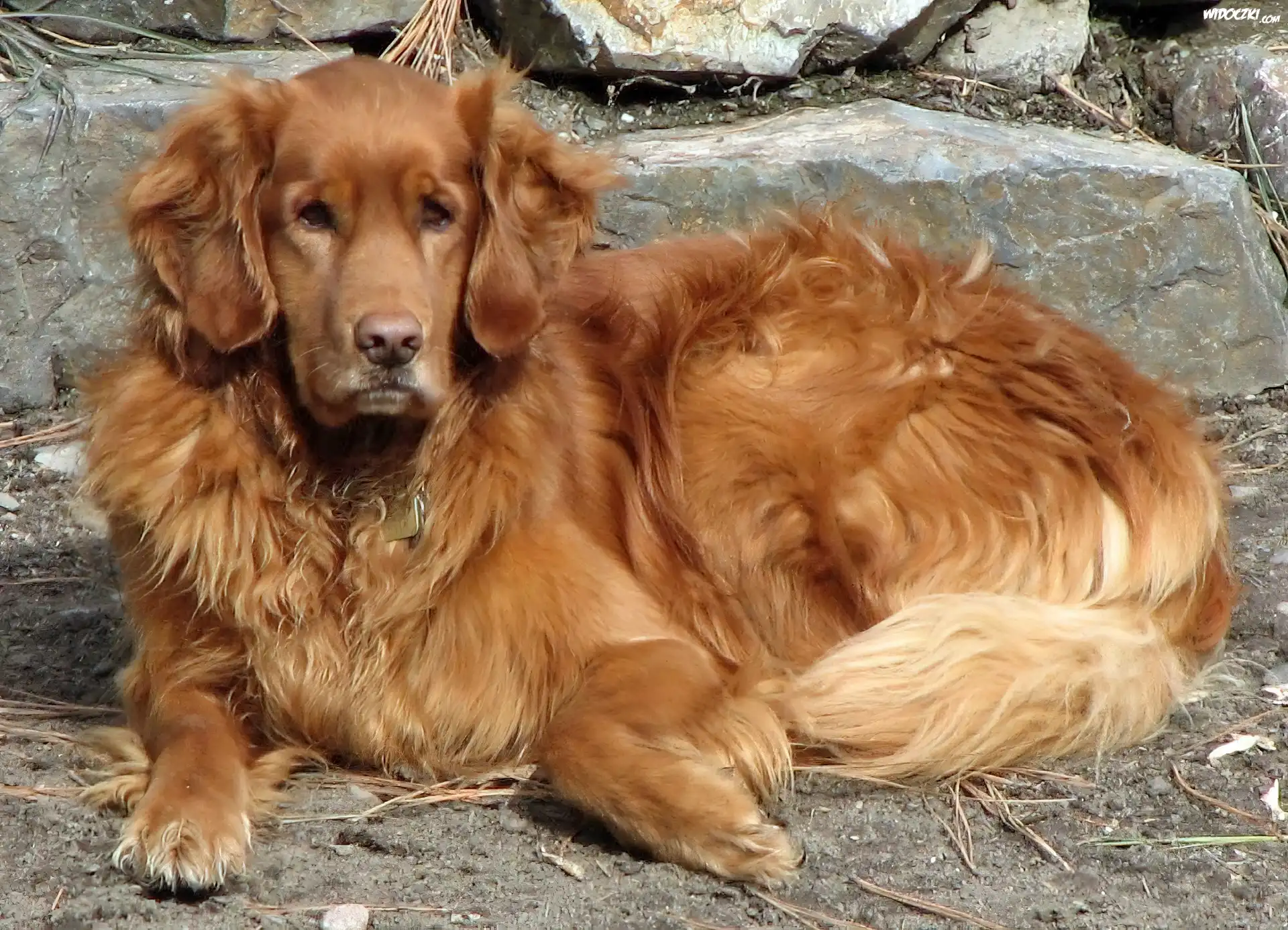 Zdjęcia, Piesek, Golden Retriever, Kamienia