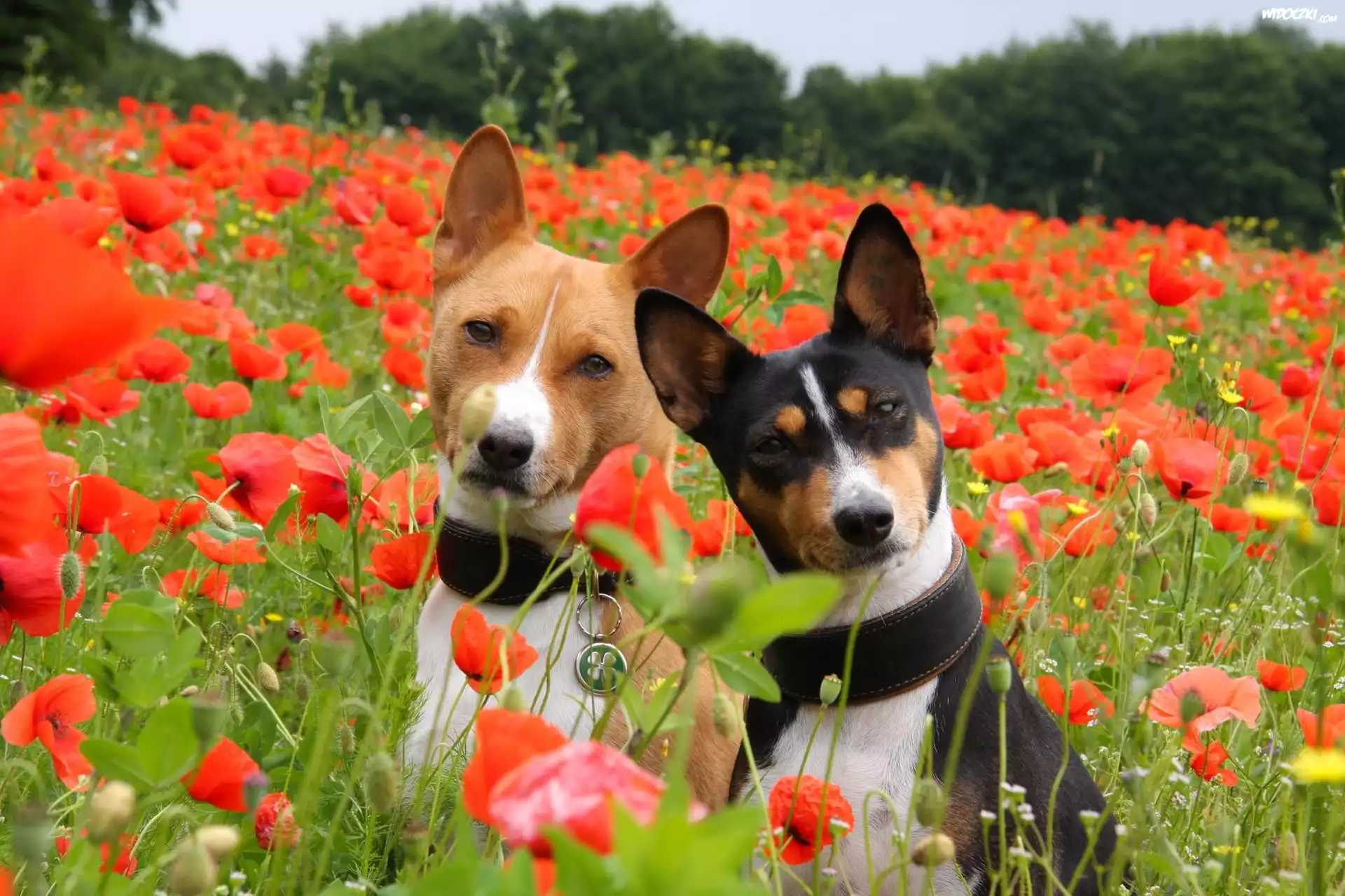Łąka, Maki, Dwa, Pieski,Basenji