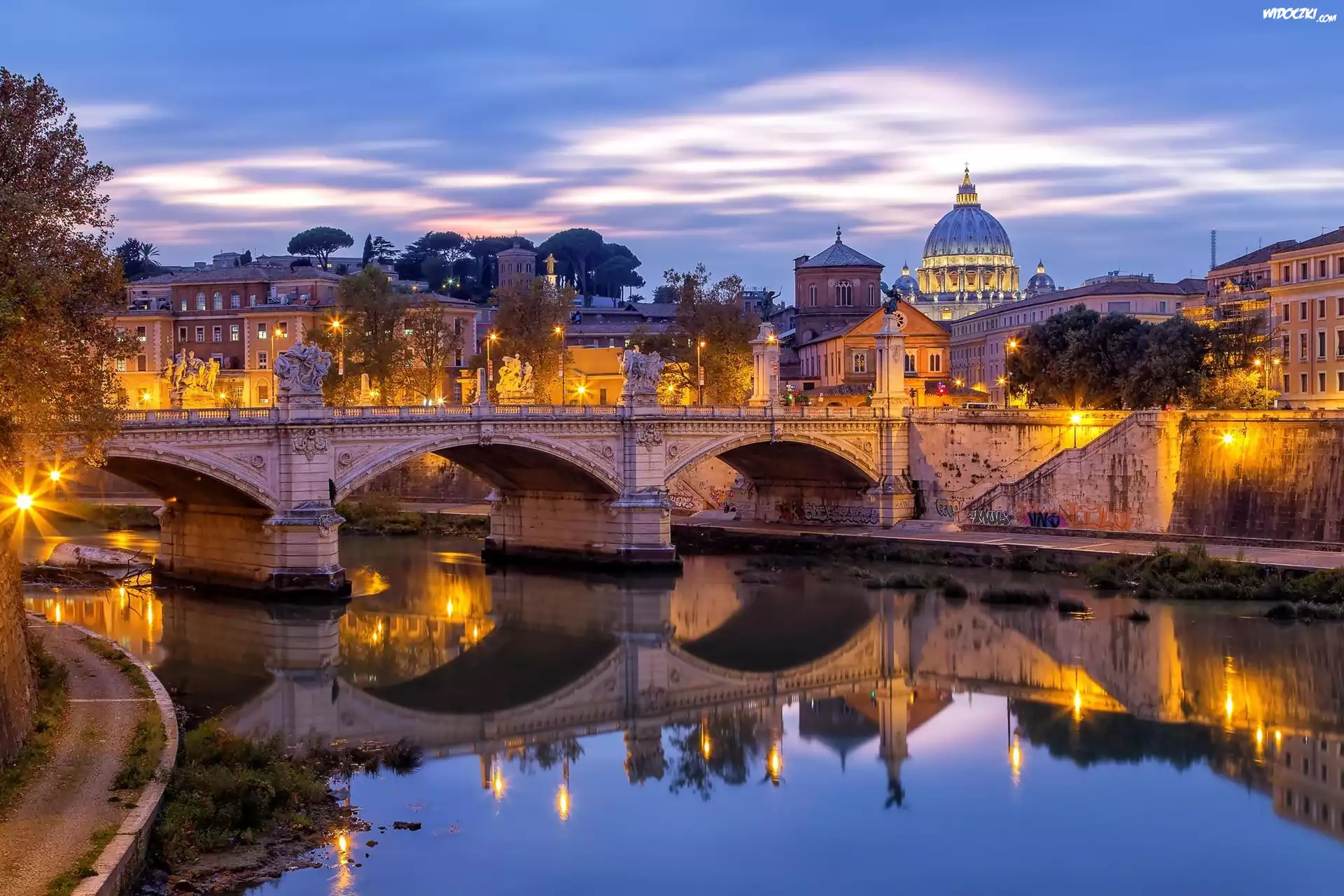 Zdjęcia, Rzym, Watykan, Most św. Anioła, Rzeka Tyber, Bazylika św. Piotra