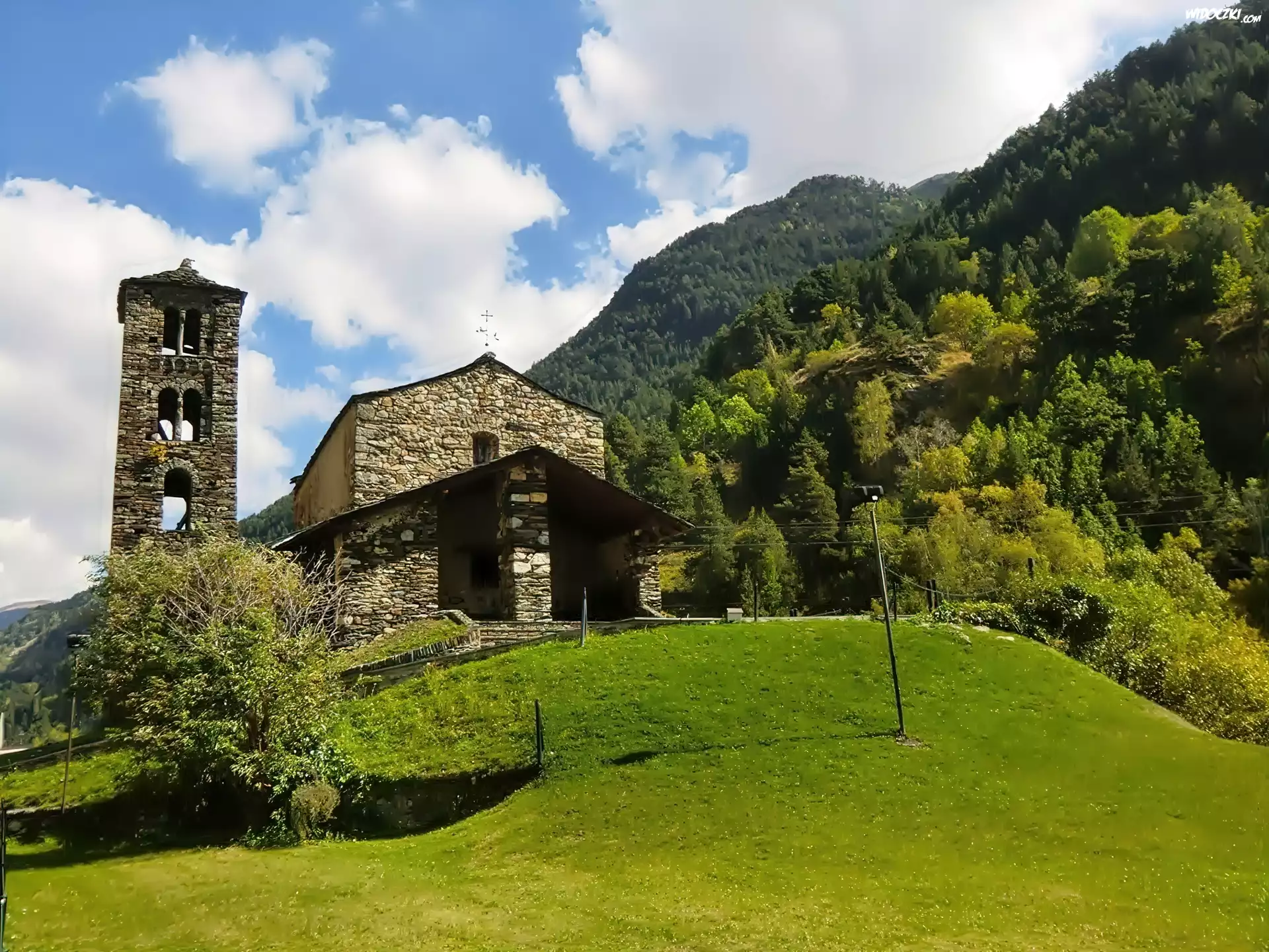 Zdjęcia, Andora, Pireneje, Las, Łąka, Kościół, Świętego, Jana