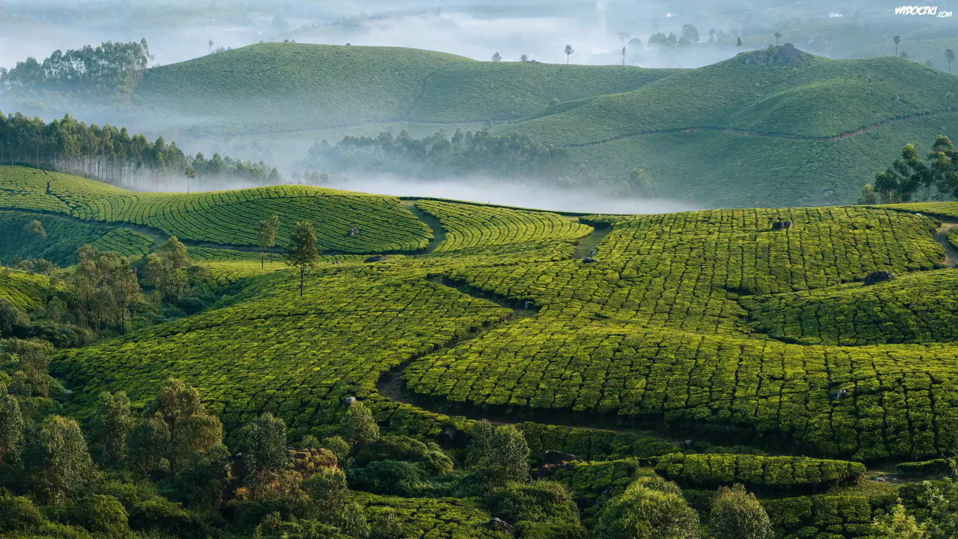 Wzgórza, Plantacja, Herbaty, Drzewa, Mgła