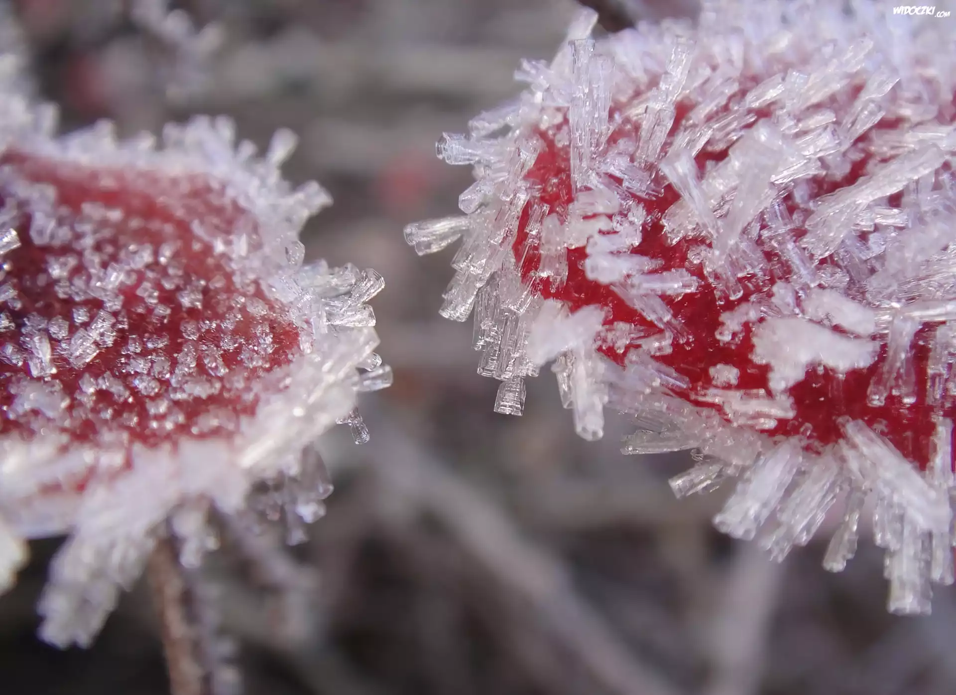 Zdjęcia, Czerwone, Płatki, Szron