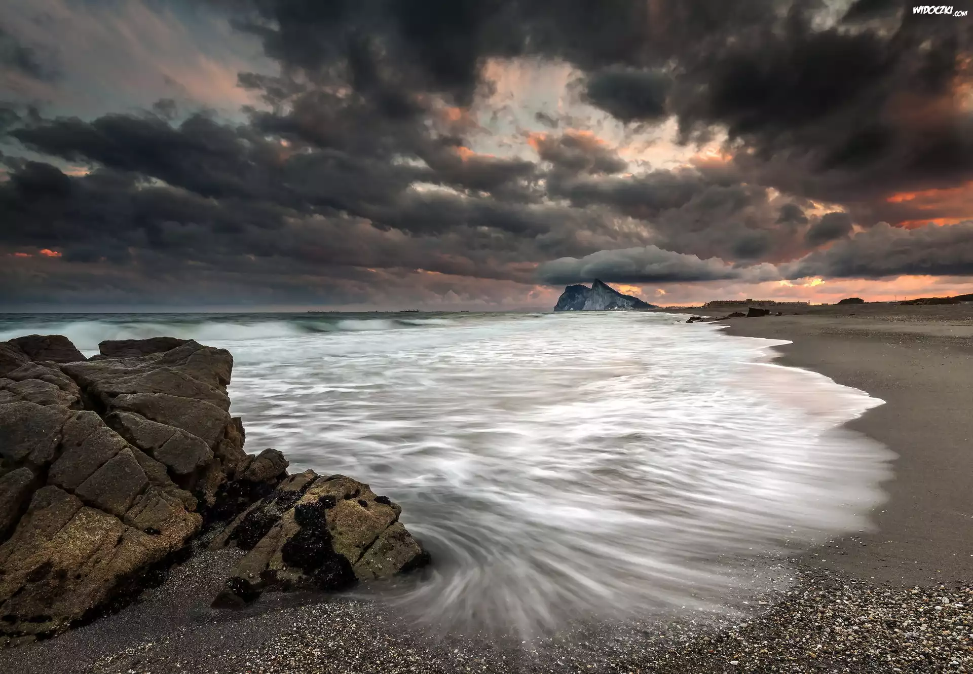 Zdjęcia, Plaża, Skały, Chmury, Fale
