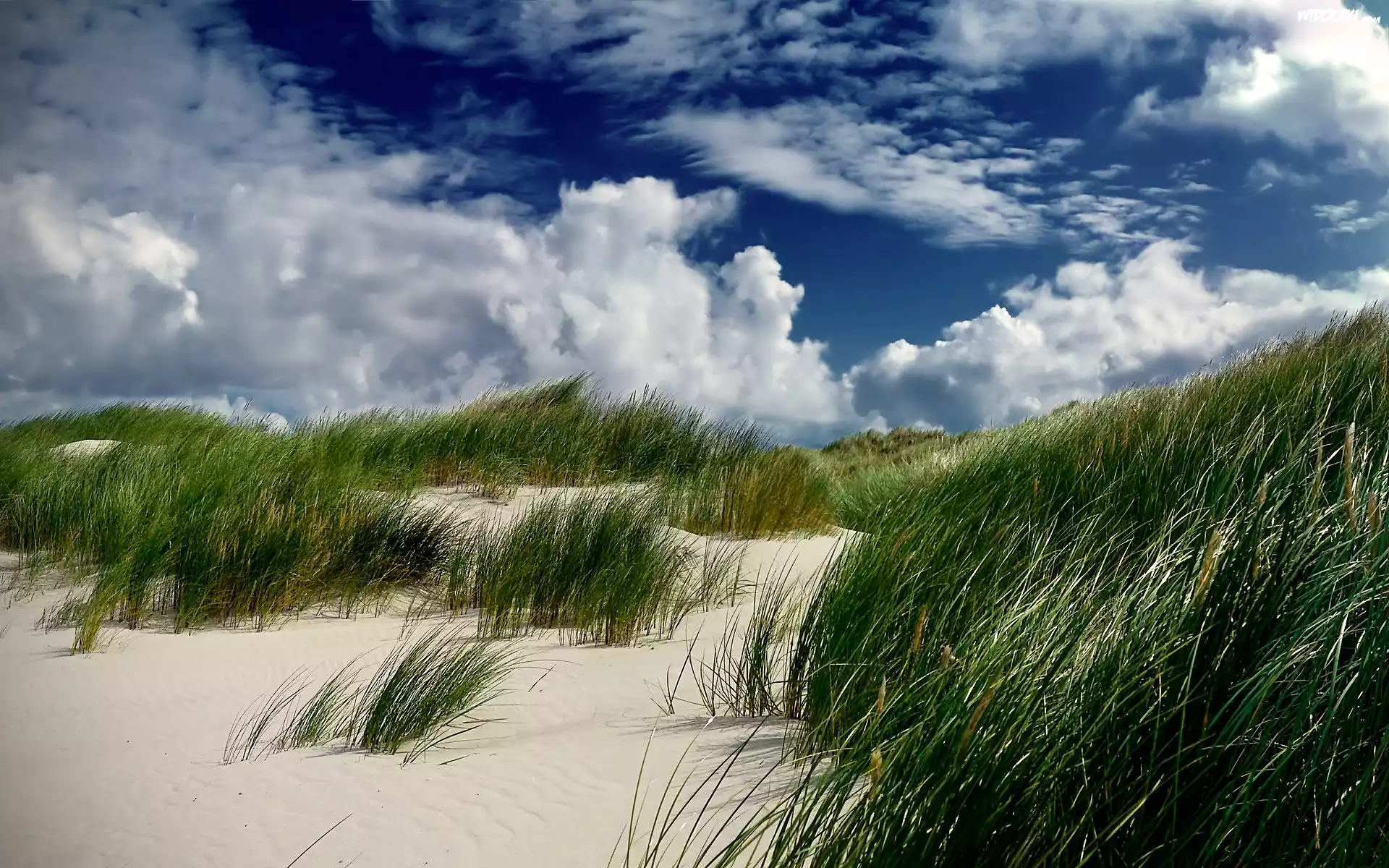 Zdjęcia, Chmury, Plaża, Wydmy