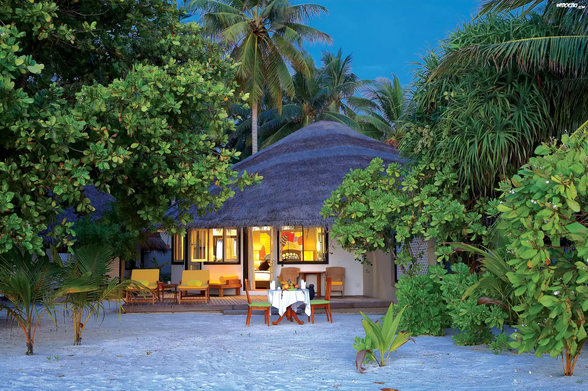 Zdjęcia, Plaża, Oświetlony, Domek, Tropik