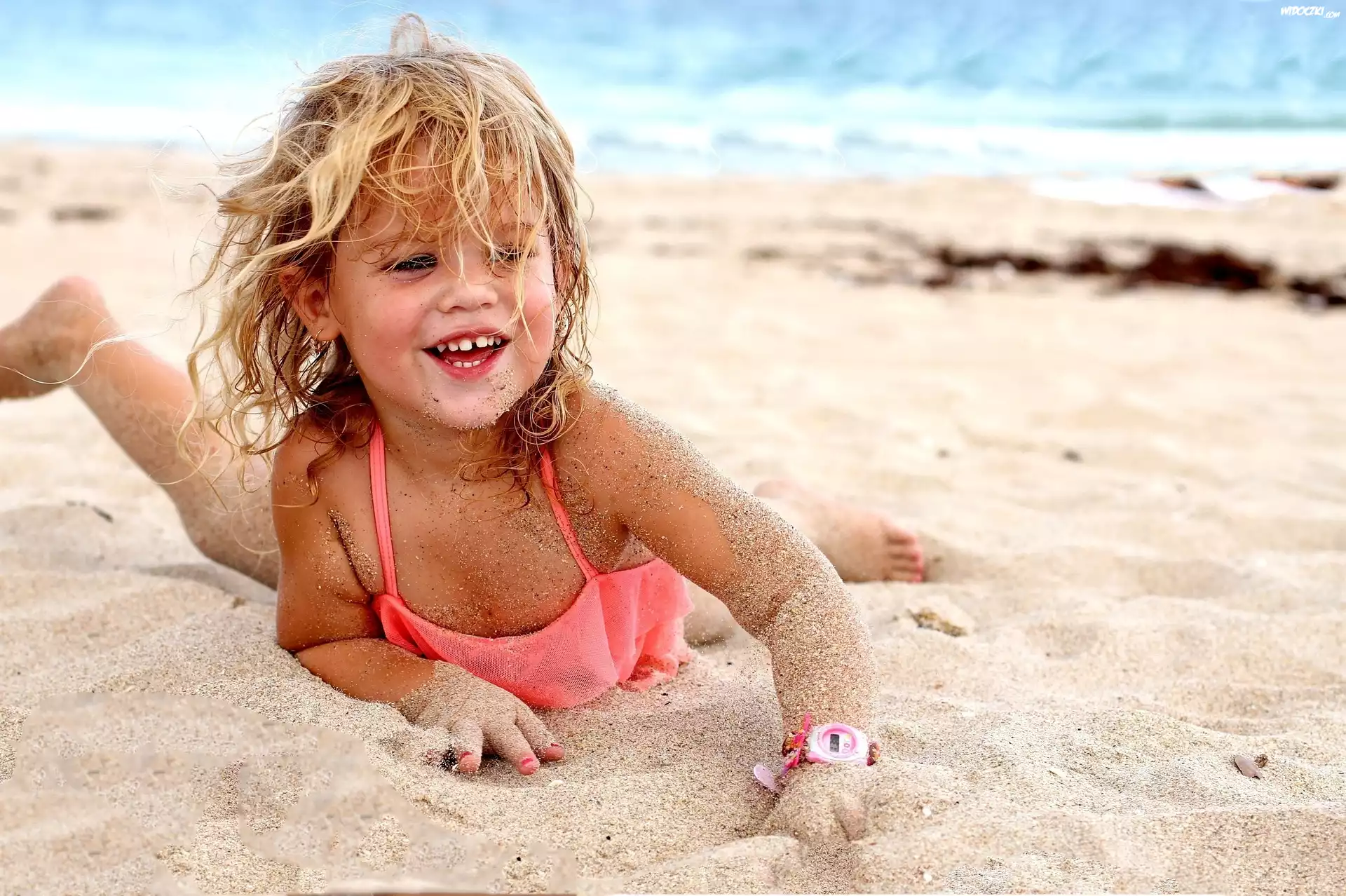 Zdjęcia, Dziewczynka, Plaża, Piasek