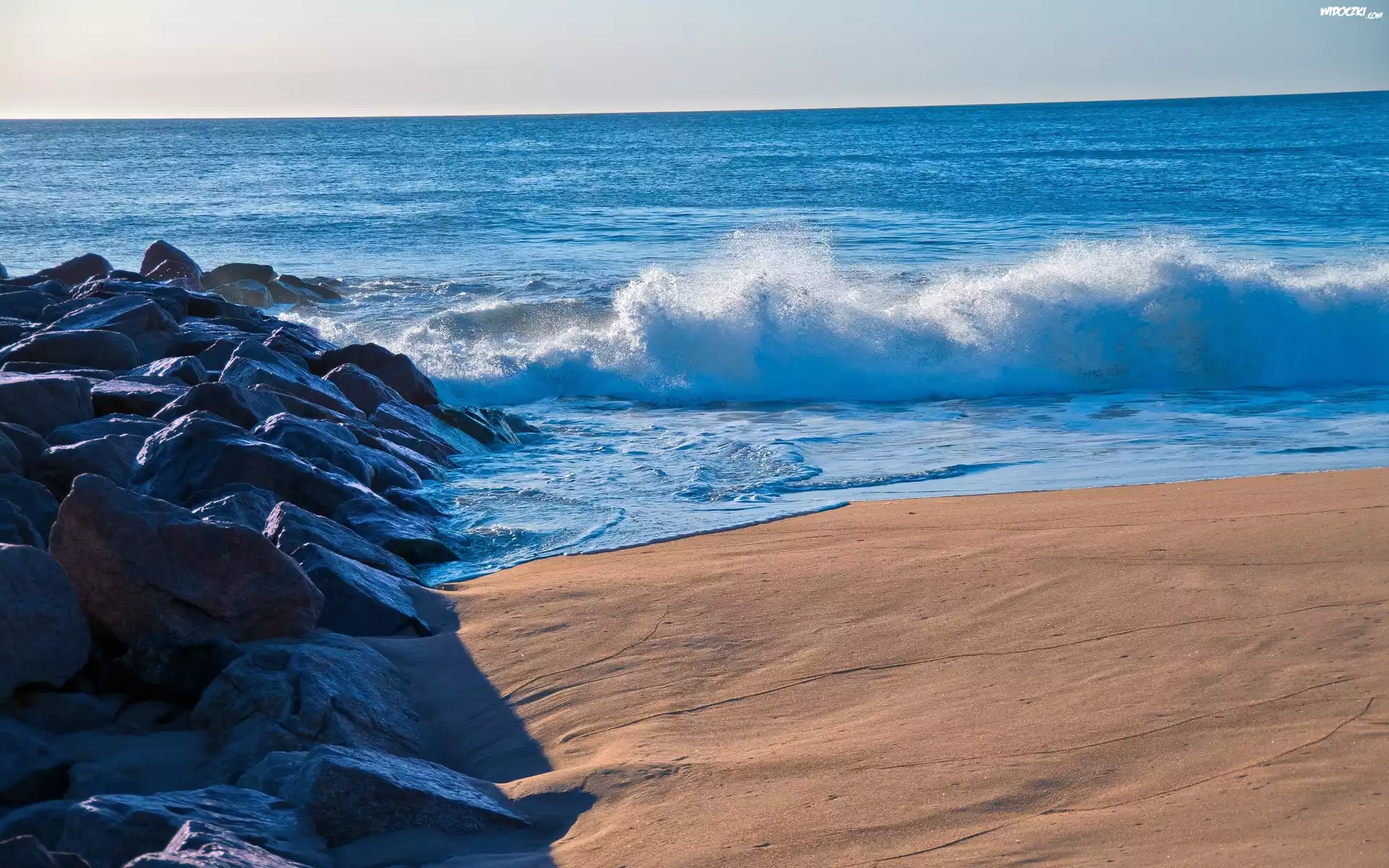 Zdjęcia, Plaża, Morze, Fale, Skały