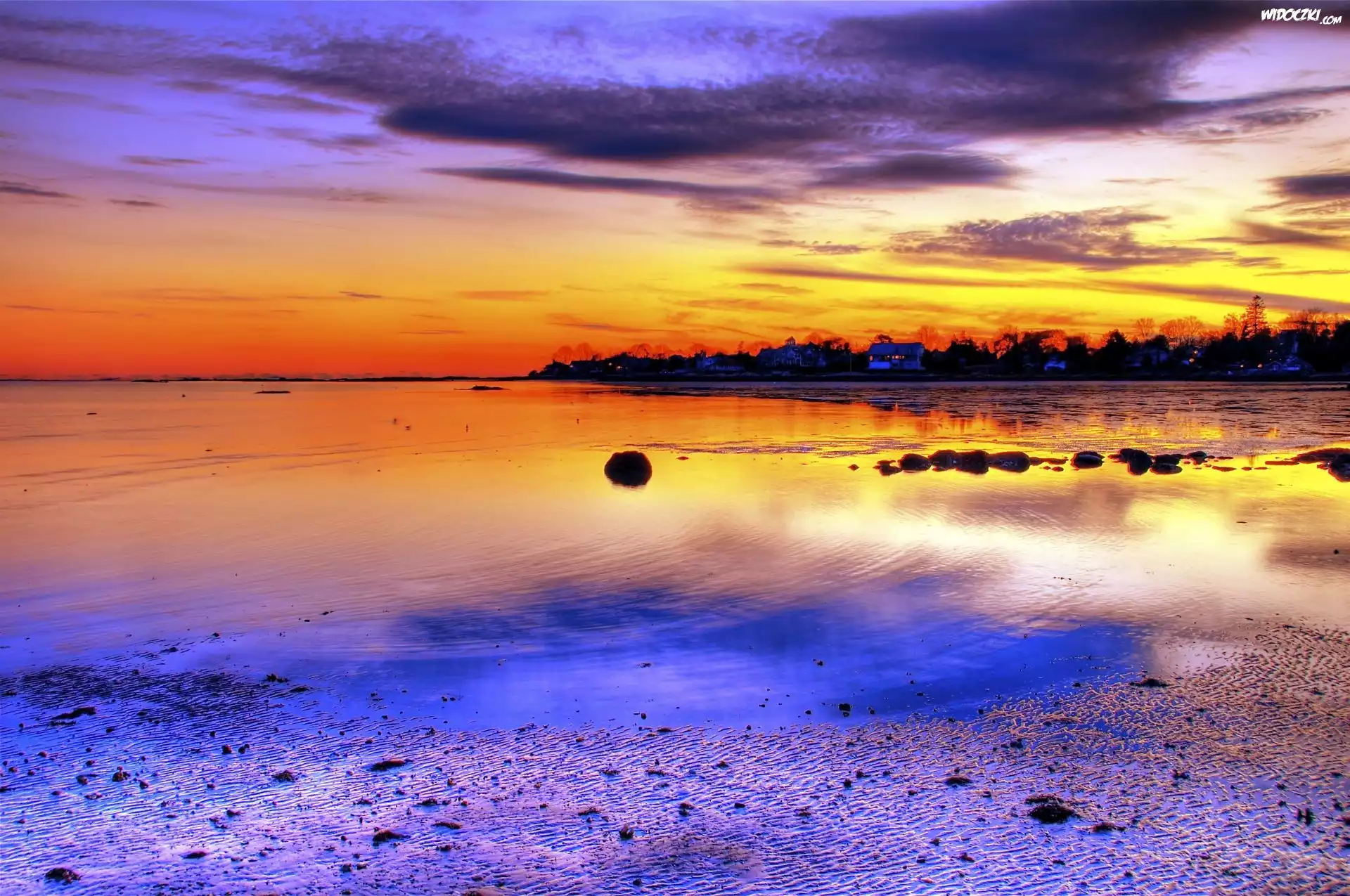 Zdj臋cia, Jezioro, Plaza, Chmury