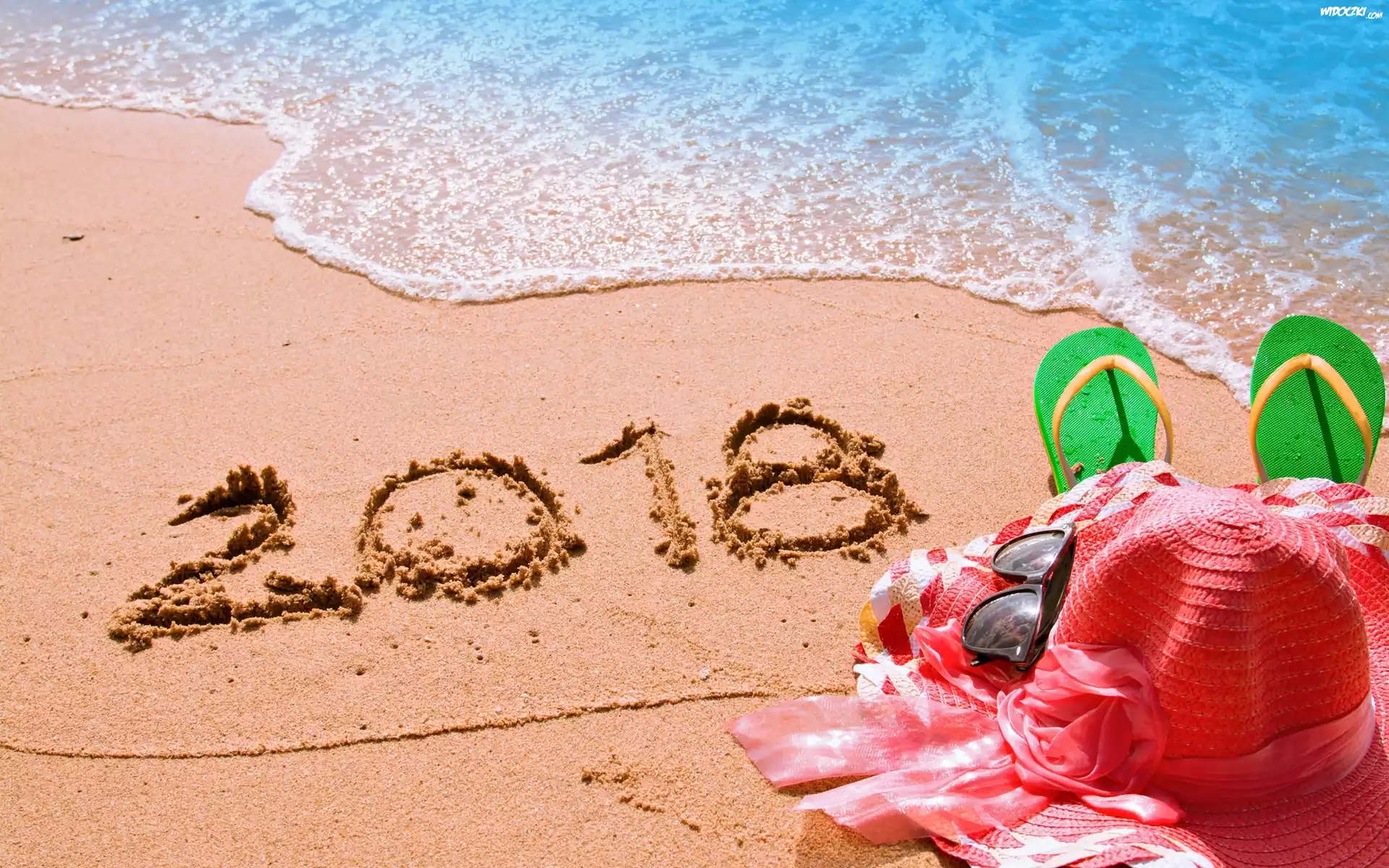 Lato, Plaża, Kapelusz, Okulary, Klapki, Wakacje, 2018