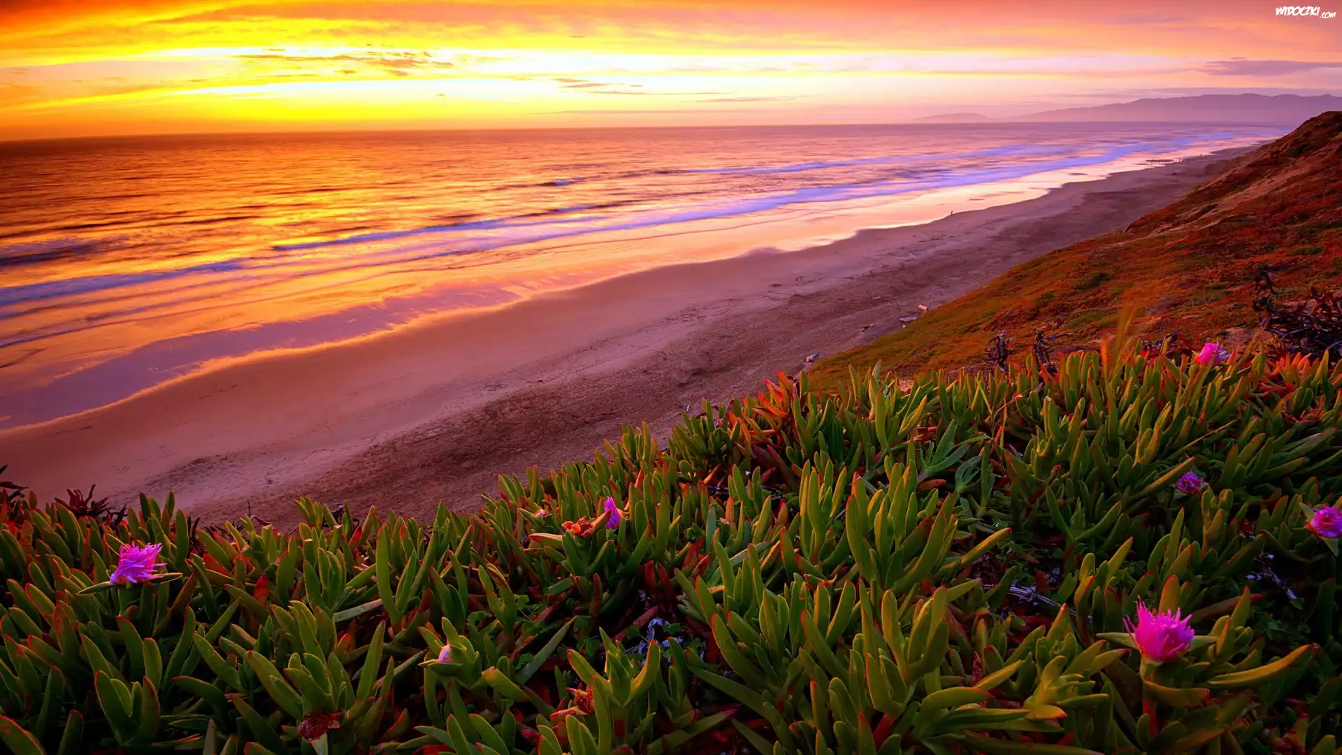 Morze, Plaża, Kwiaty