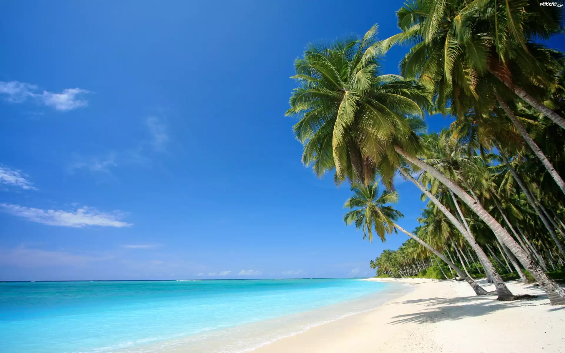 Zdjęcia, Morze, Plaża, Palmy