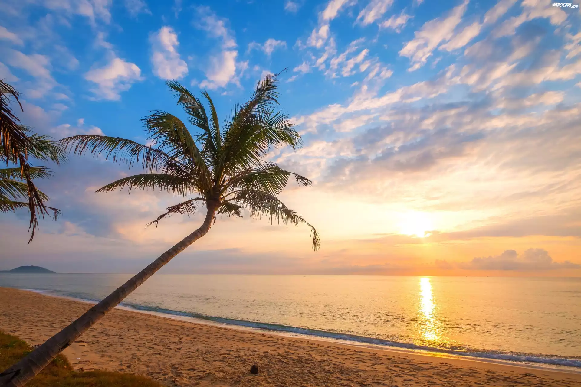 Zdjęcia, Plaża, Palmy, Morze, Słońce