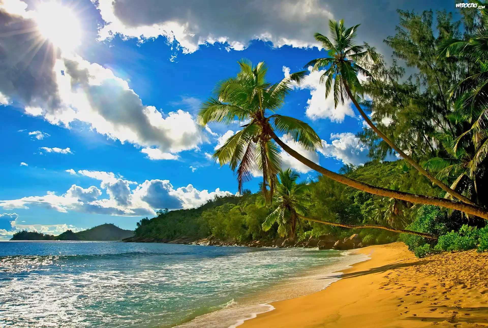 Zdjęcia, Plaża, Piasek, Morze, Palmy